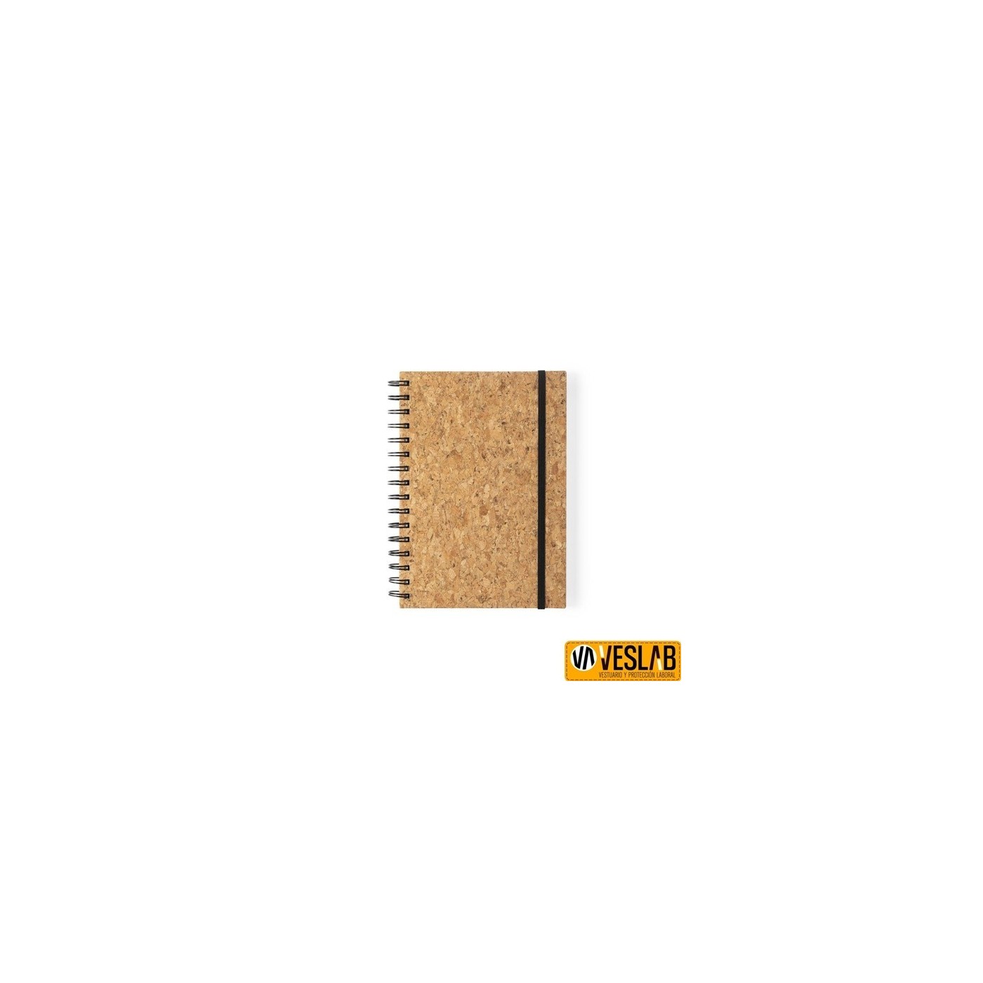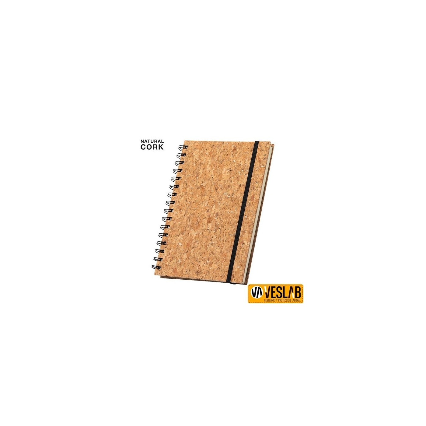 Nature ring binder. With rigid caps in natural cork and elastic closure in black. 100 sheets with eco design and disposition to a stripe.