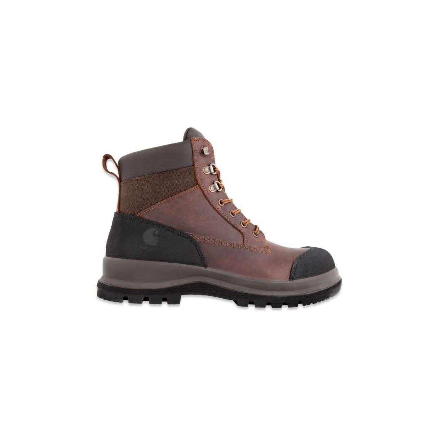 Carhartt's DETROIT RUGGED FLEX™ S3 safety boots feature a fiberglass toe cap, slip-resistant Vibram outsole, and a cushioned, shock-absorbing insole. They resist water, heat, and oils, providing maximum protection and comfort.