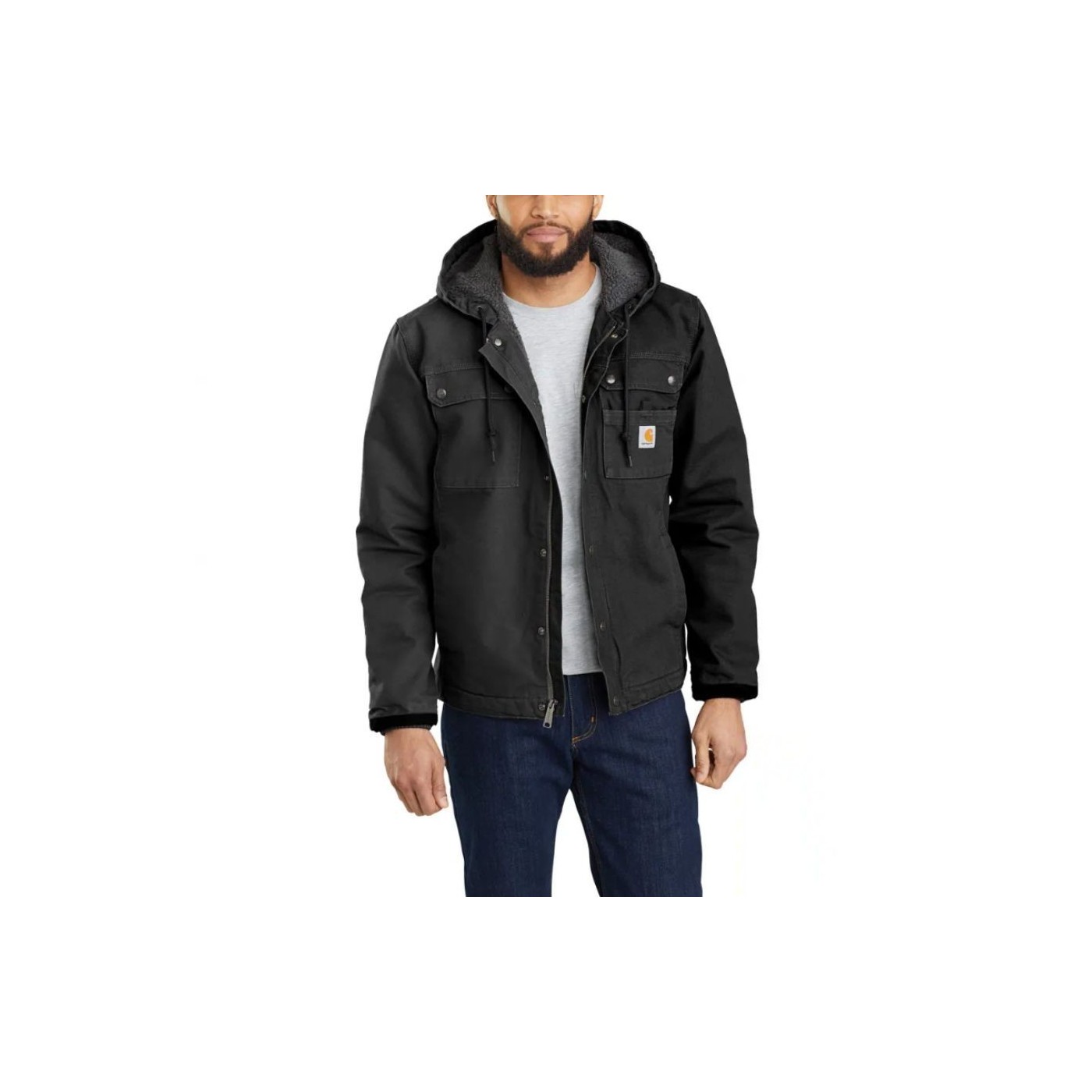 The Carhartt hooded sherpa-lined utility jacket made from 100% cotton Duck is built to withstand cold, wind, and demanding workdays. Rugged yet flexible, it delivers warmth, durability, and a timeless workwear style.
