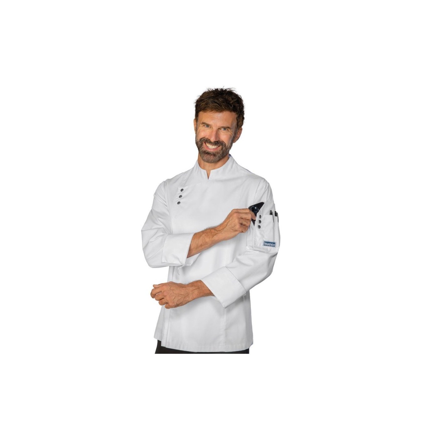 The Madrid Kitchen Jacket is designed to offer maximum comfort and functionality to kitchen professionals. With an elegant and practical design, this men's jacket is perfectly adapted to the demands of the modern kitchen, guaranteeing comfort during long working days. Its high-quality composition and innovative design make this garment an ideal choice for those seeking comfort and style in their daily lives.