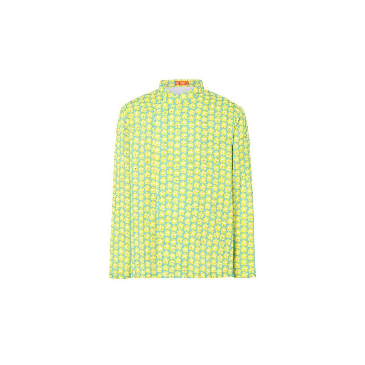 The FLEUR kitchen jacket for men combines an exclusive design by Agatha Ruiz de la Prada, breathable Coolmax fabric, and a sleeve pocket.