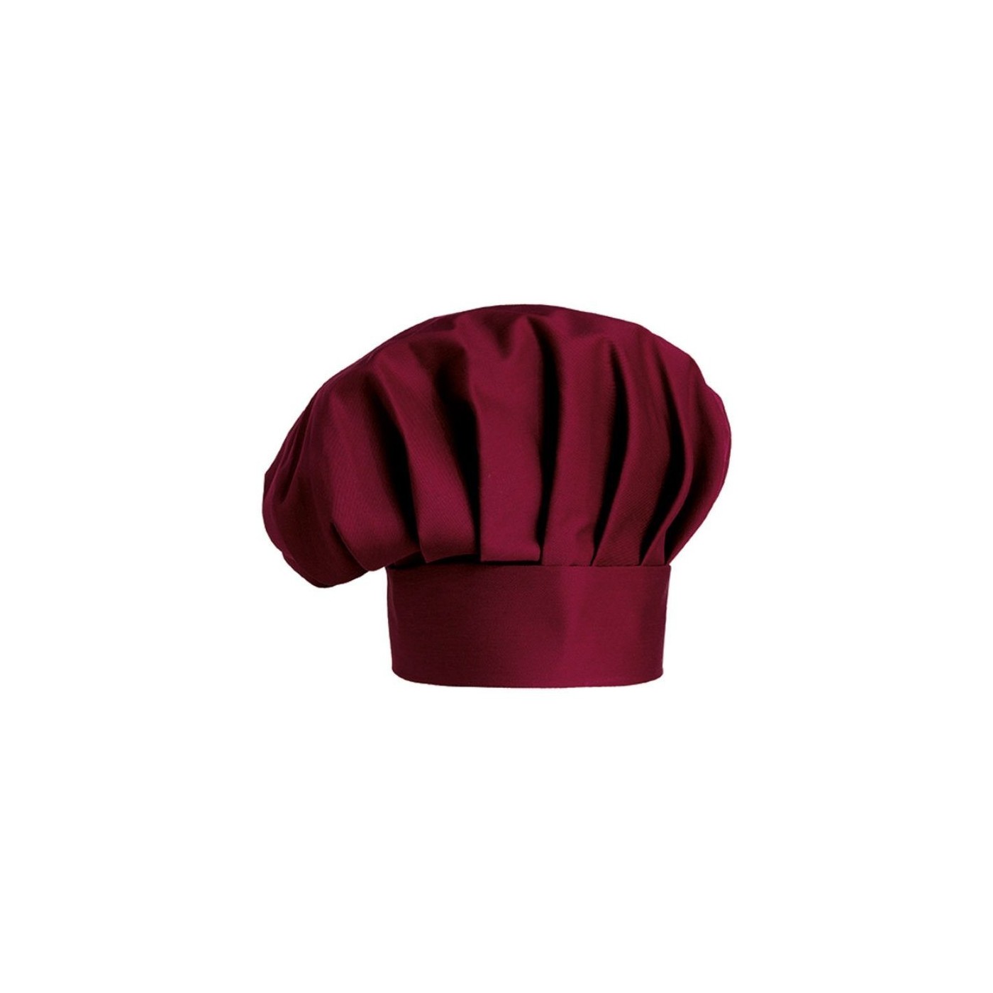 The Egochef Chef Hats in elegant black and burgundy colors is unisex and made from 65% polyester and 35% cotton. Equipped with a practical Velcro closure for a secure and customized fit, ideal for a professional style in the kitchen.
