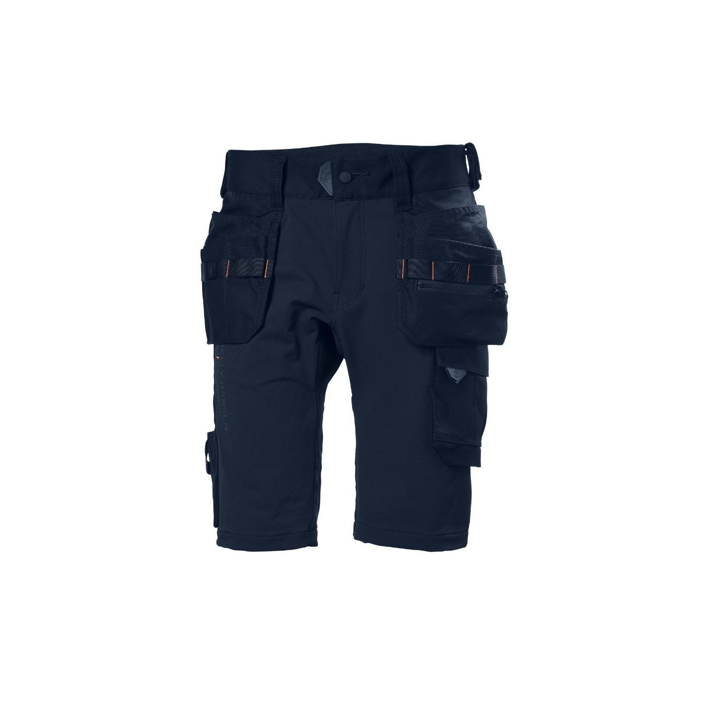 Features: 93% Polyamide, 7% Elastane |79% Cotton, 21% Polyester - 295 g/m2 |4-Way Stretch Fabric|YKK zipper |Cordura fabric reinforced hanging pockets |Hanging pockets with zipper for small tools |Back pockets |Loop with double Velcro on both sides for hammer holder |Thigh pocket with flap for accessories/tools |Broad belt tunnel for extra strength and stability at the back |Extended back for better comfort |Gusset at crotch | ID-Card loop |Ruler pocket|