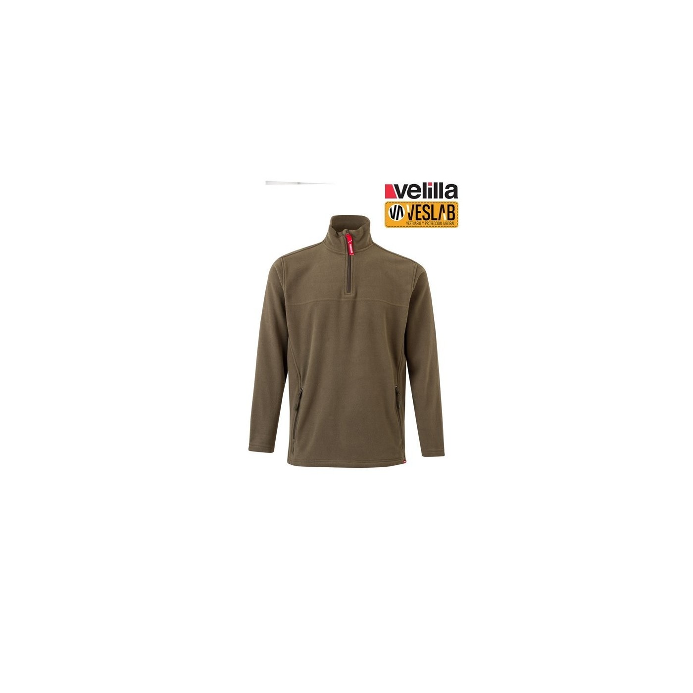 Fleece jacket with high neck treatment antipilling central locking zipper and two zippered pockets