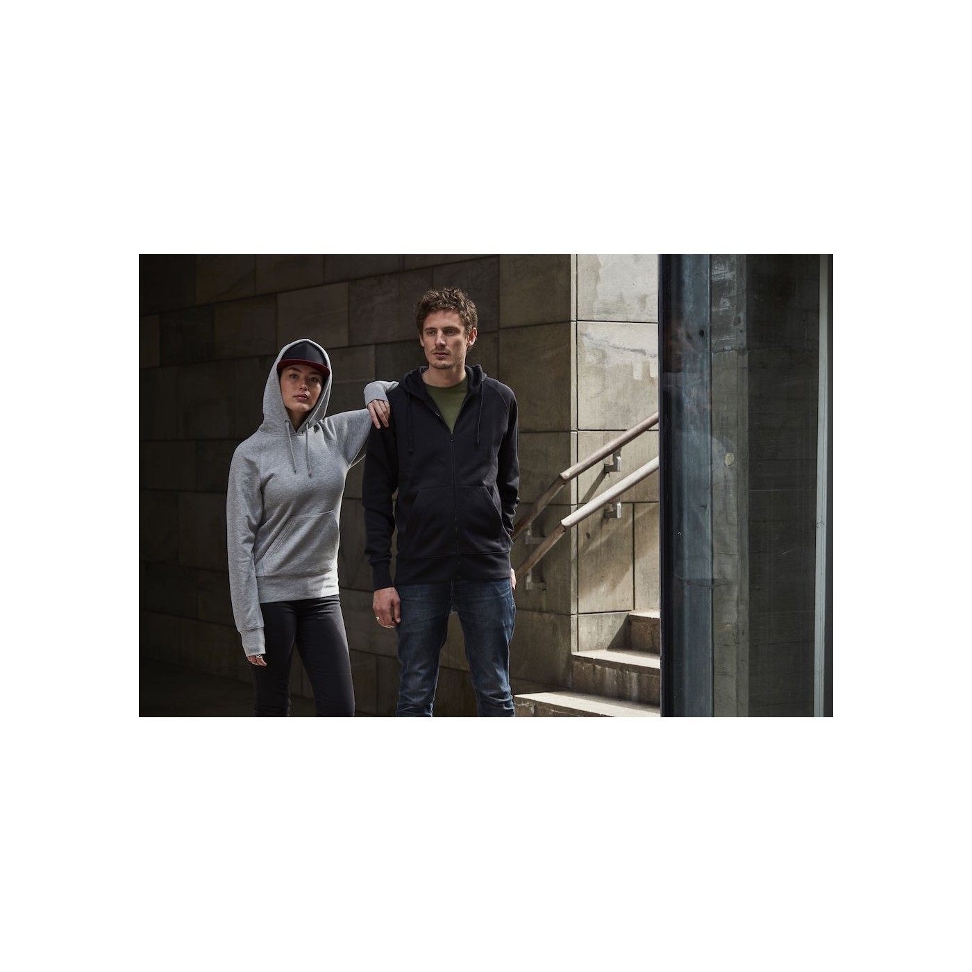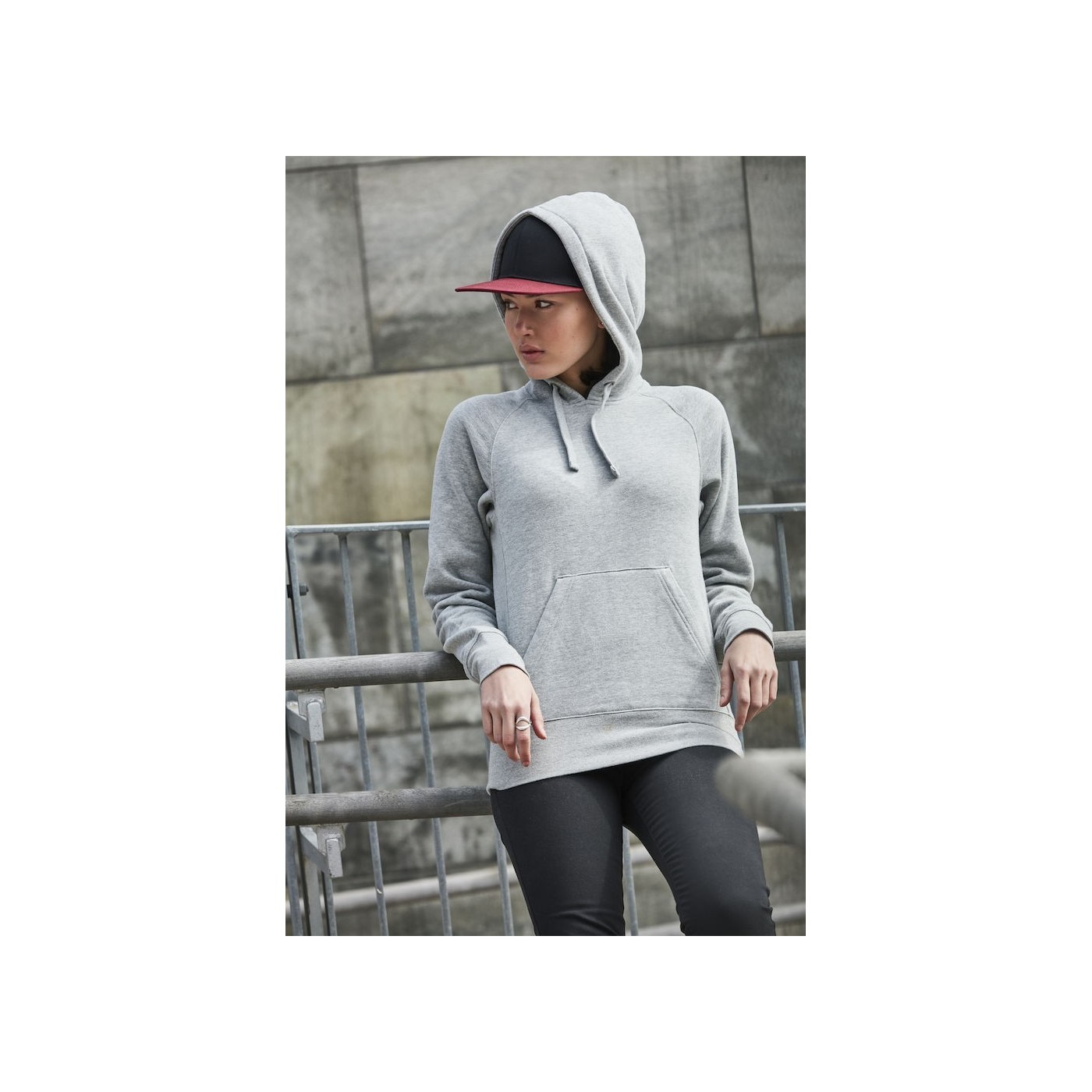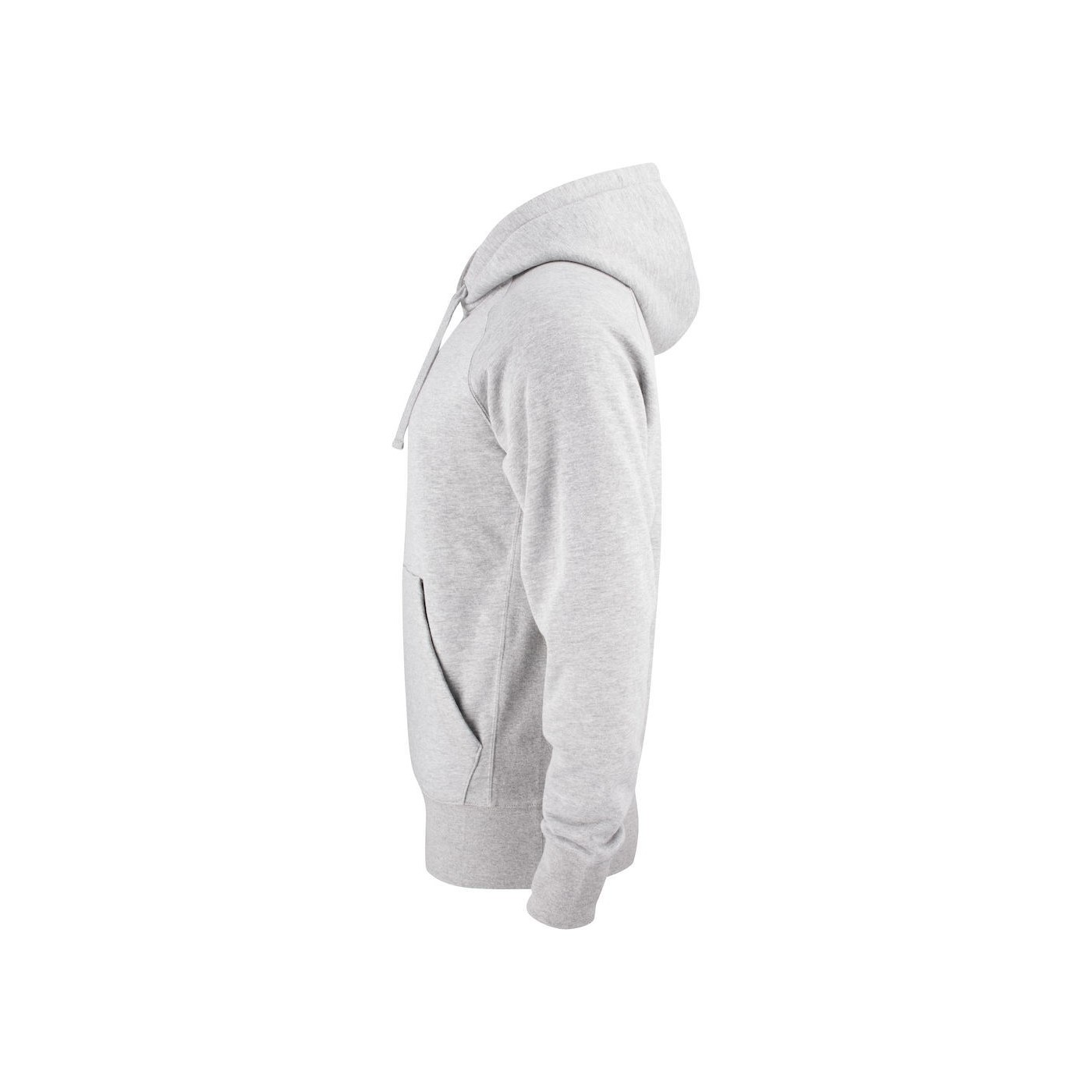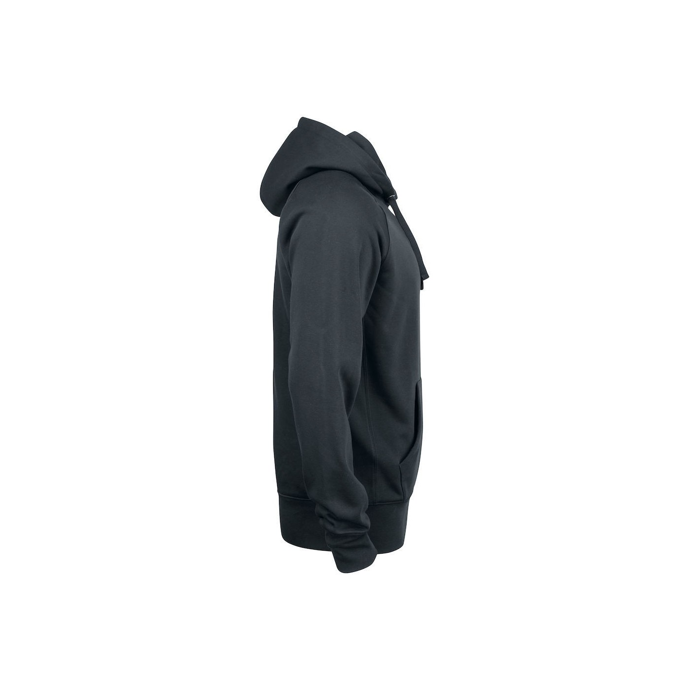 Clique hoodie. Kangaroo pocket, pocket hidden in the side seam. Raglan and ribbed 2x2 sleeves on the sides, cuffs and waist. Twill collar Adapted for headset.