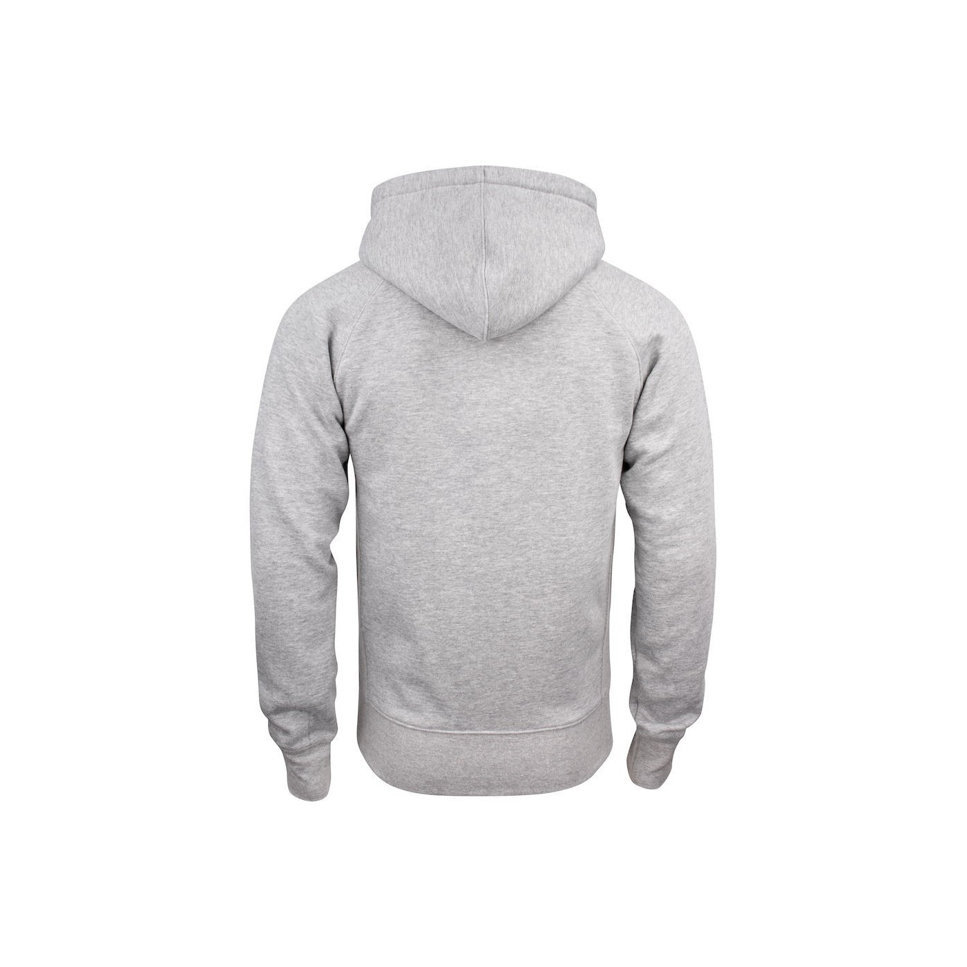 Clique hoodie zipped. Kangaroo pocket, pocket hidden in the side seam. Raglan and ribbed 2x2 sleeves on the sides, cuffs and waist. Twill collar Adapted for headset.