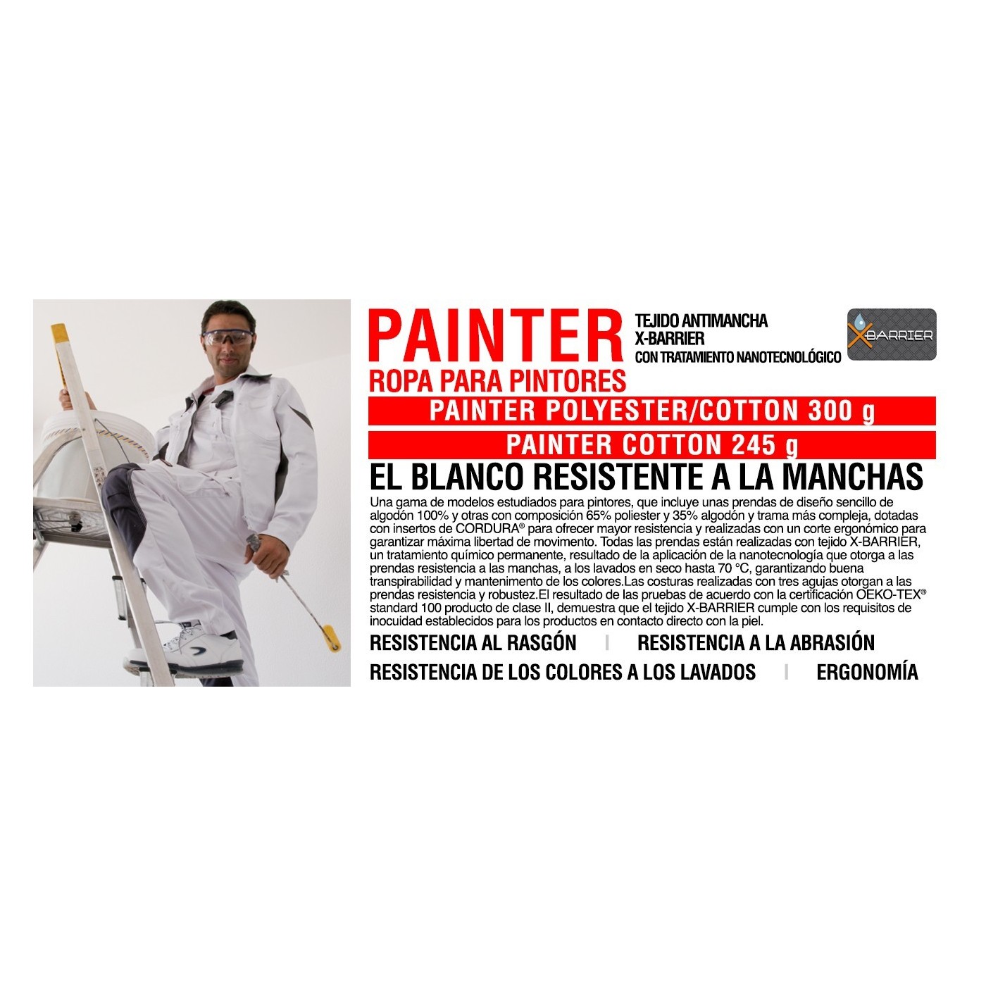 Bolsillo portamóvil con tejido aislante E-CARE, corte ergonómico de las piernas y rodillas, tiro reforzado, bolsillo en el pecho con cierre de cremallera, inserto portabolígrafos, amplios bolsillos delanteros, bolsillo portamonedas, bolsillo en la pierna con insertos porta herramientas, doble bolsillo traseros, uno con tapeta, pasador portamartillo, bolsillo portametro.