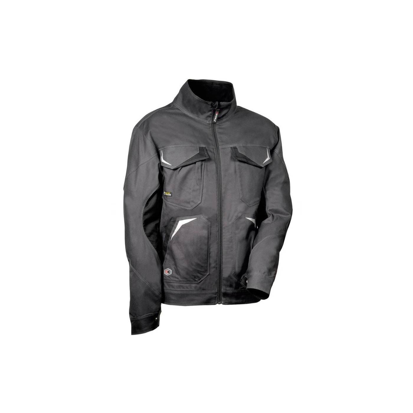 DESCRIPTION: 2 bottom pockets with flap, 2 breast pockets with velcro, wide internal pockets, badge pocket loop, 3M™ SCOTCHLITE™ Reflective Material reflex inserts- 8712 Silver Fabric , pen pocket, holes for ventilation, flap protecting the chin, adjustable cuff, arm ergonomic design, internal mobile pocket protecting against E-WARD electromagnetic waves , stretch fabric, abrasion resistant elbow patch, YKK® zip