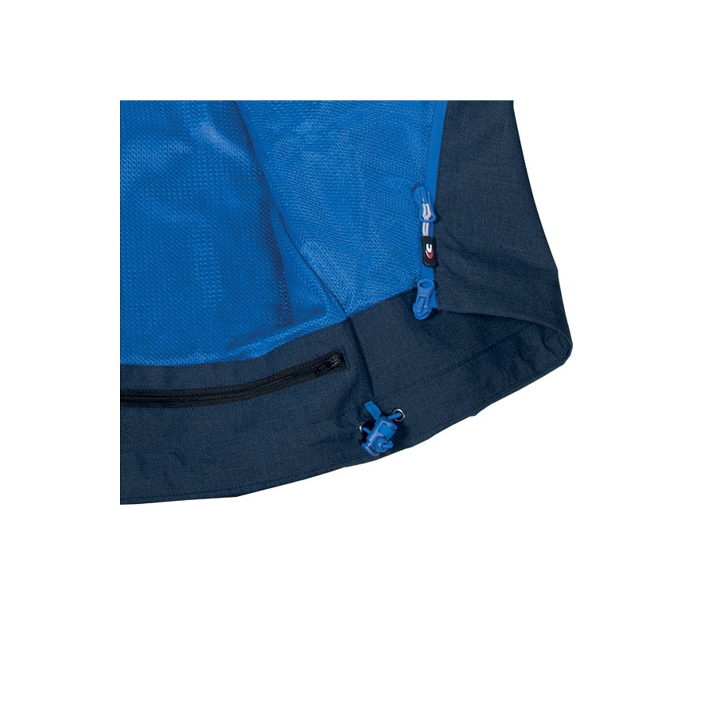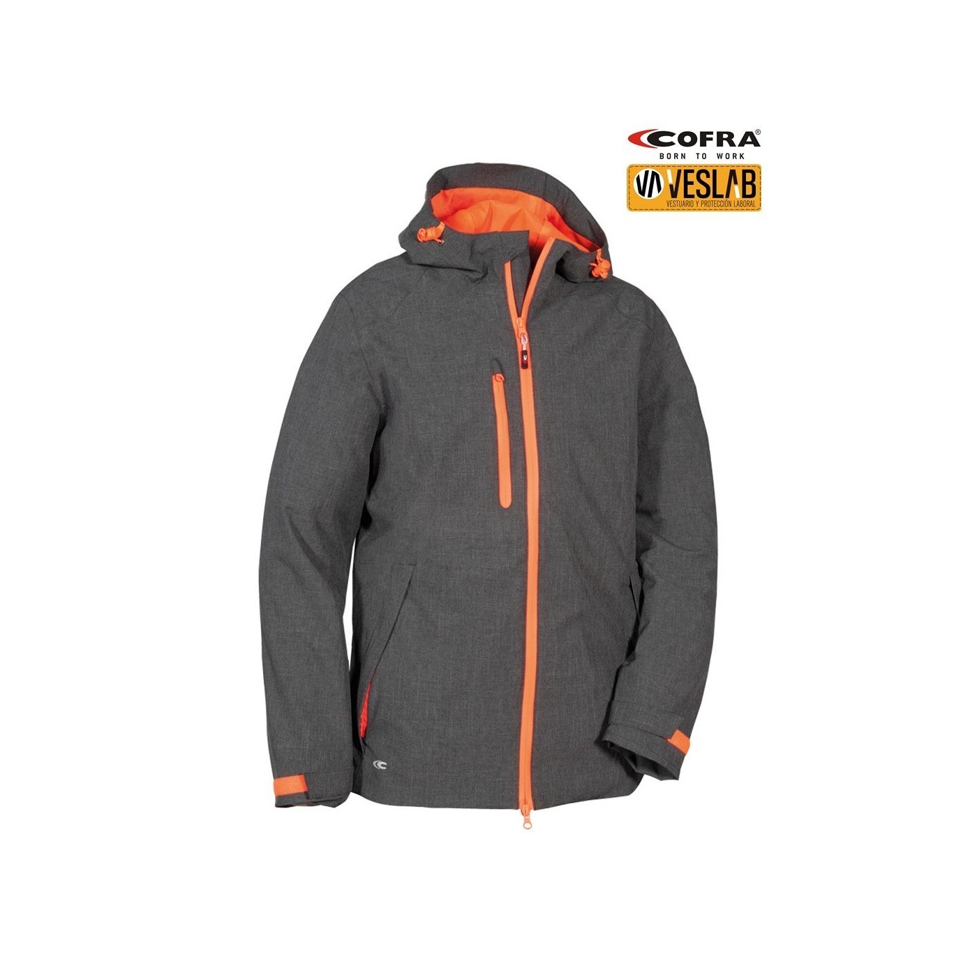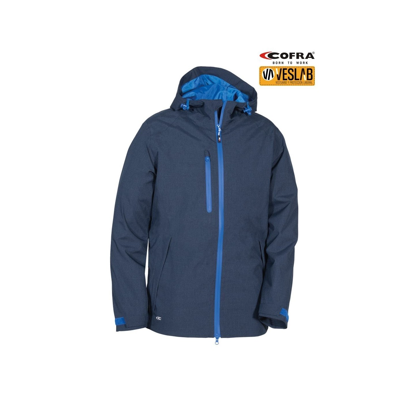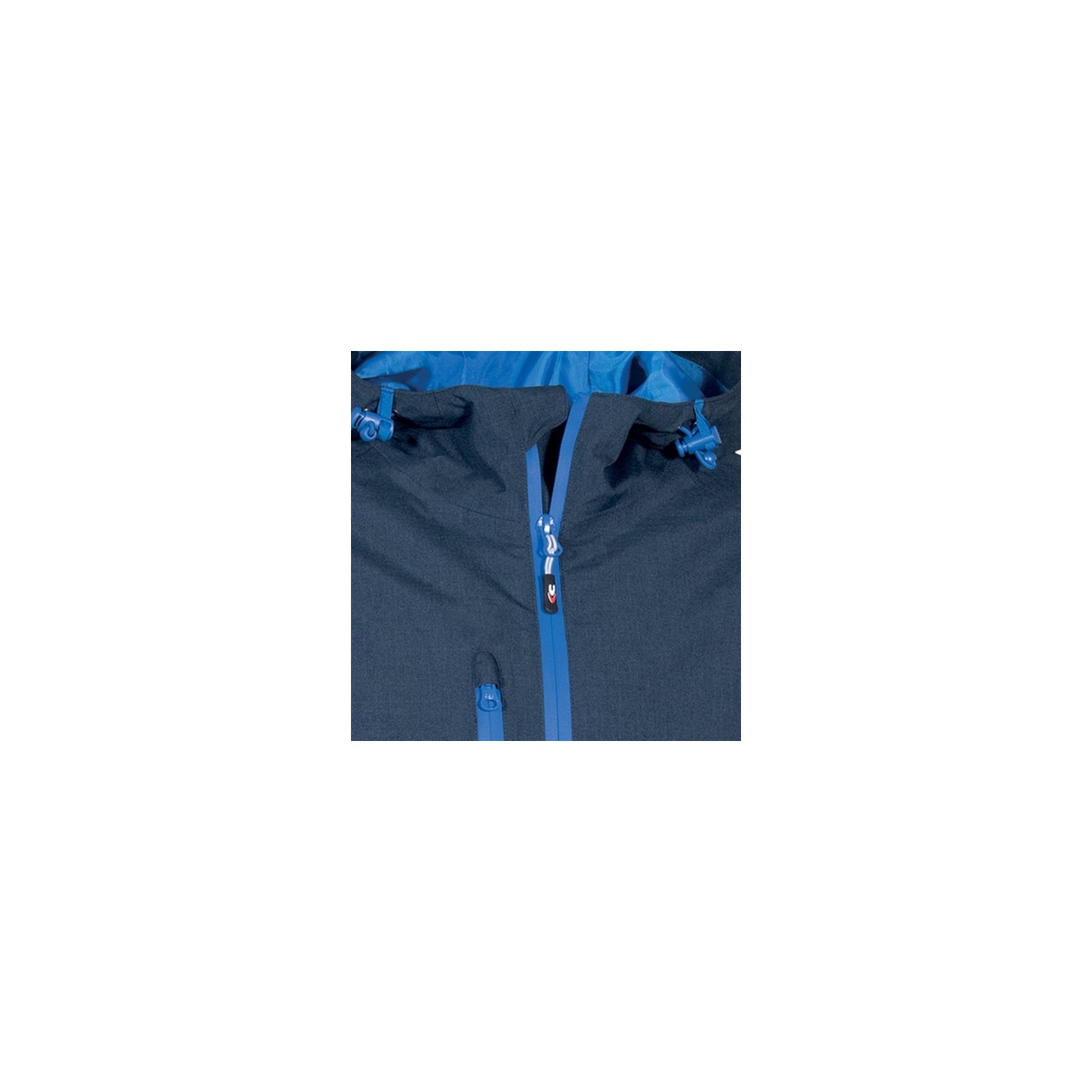 DESCRIPTION: 2 large front pockets with zip closure, lower adjustment with internal drawstring, chest pocket with waxed zip closure, interior pocket with velcro, interior Napoleon pocket / mobile phone holder with E-WARD fabric, adjustable hood with drawstring, heat-sealed seams, waterproof garment, central covered zip with double slider, mesh lining for better breathability, waterproof thread, velcro adjustable cuffs, marbled fabric