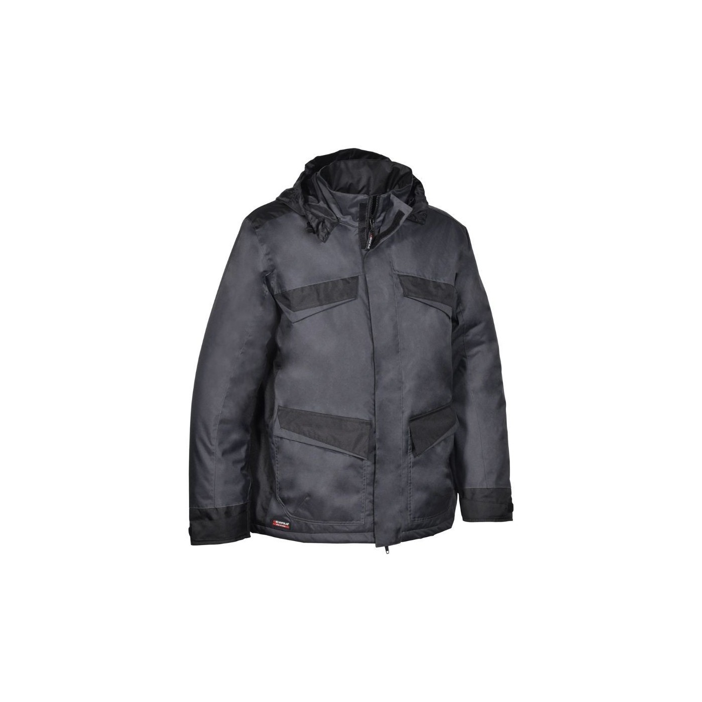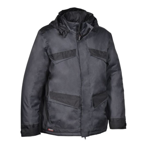 The NUVUK padded jacket by Cofra offers waterproof and windproof protection with thermo-sealed seams, a detachable hood, and ergonomic fit. Ideal for outdoor environments in sectors such as construction, logistics, and agriculture.