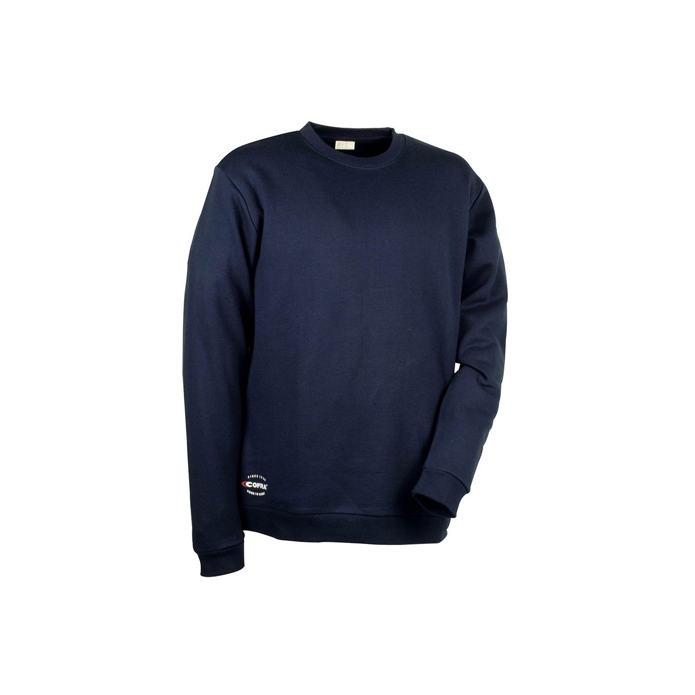 Cofra work sweatshirt ideal for construction, industry and logistics. With elastic hem and sleeves, it is made of 65% polyester and 35% cotton, with a weight of 280 g/m². Available in various colors, it is not detectable by metal detectors.