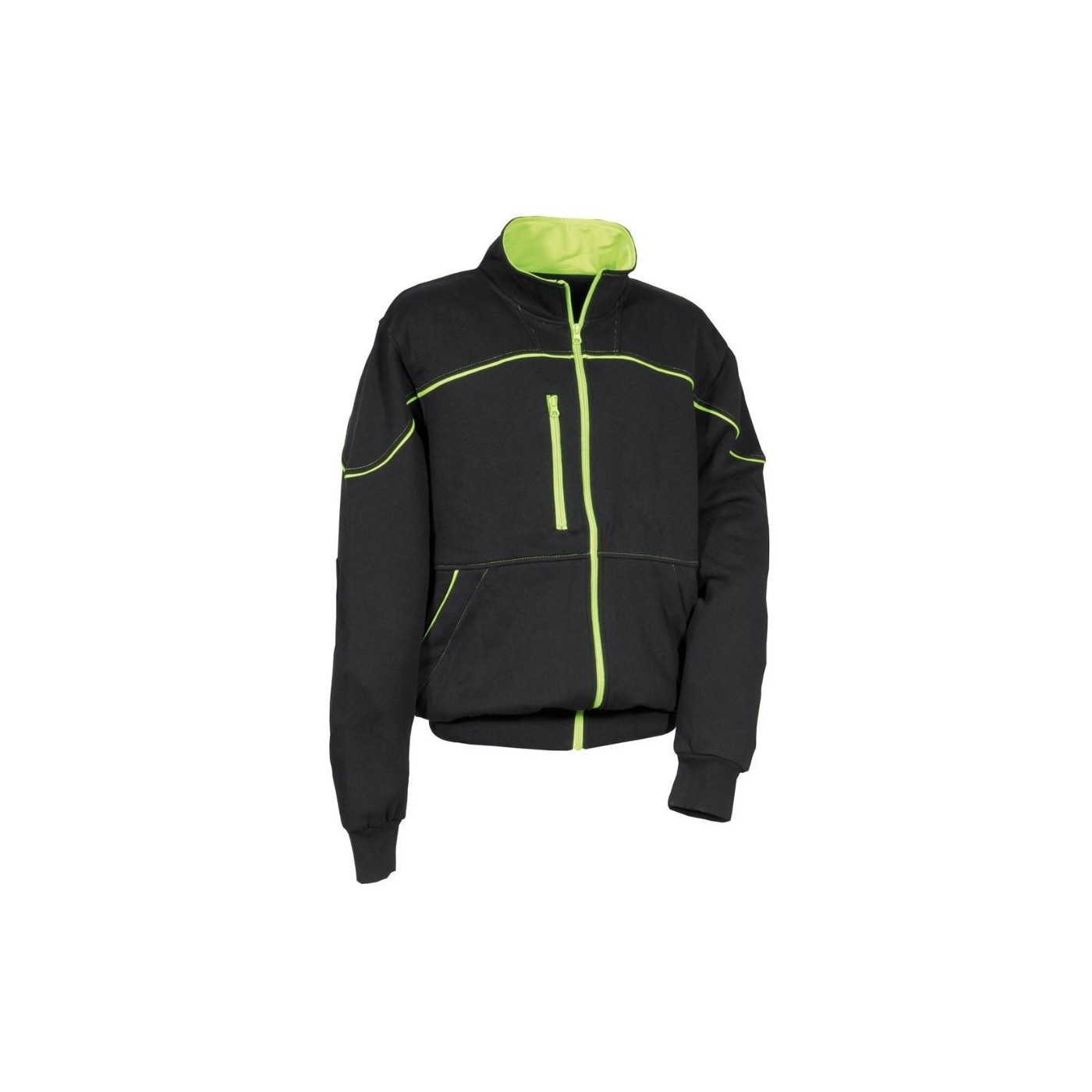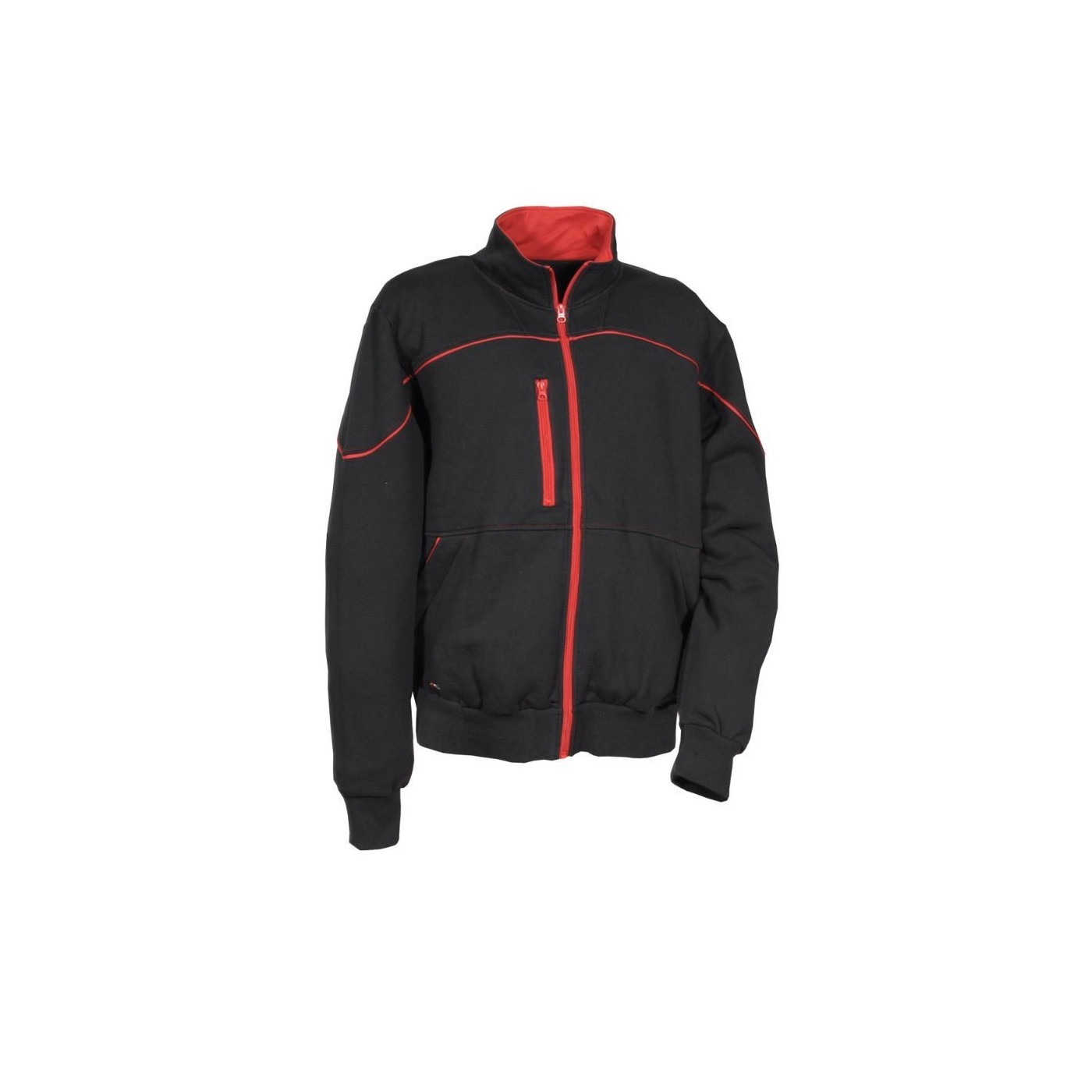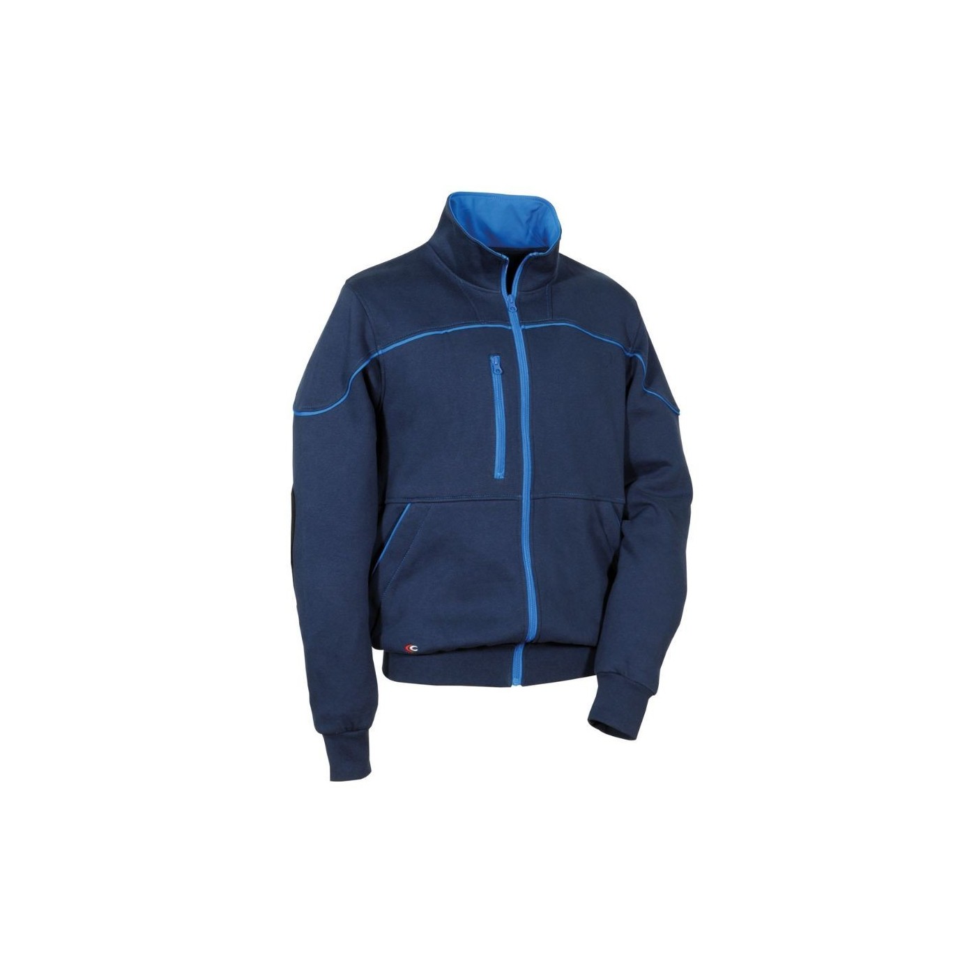 Zip-up sweatshirt with contrast trims. It has several very practical pockets: on the chest and two large side pockets on the bottom, all of them with zippers. Elasticated sleeves and waist for a better fit. Reinforced elbows.