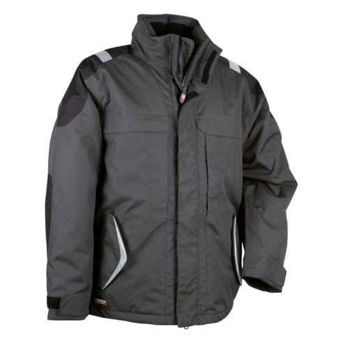 The CYCLONE work jacket by Cofra offers maximum protection against cold and harsh weather, with waterproof fabric, breathability, 3MTM SCOTCHLITE™️ reflective inserts, and reinforced elbows. Ideal for outdoor work in demanding environments.