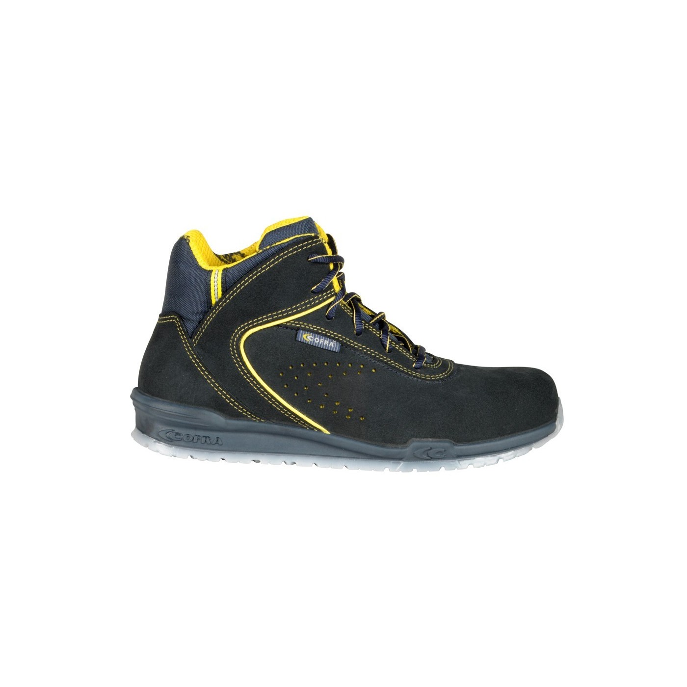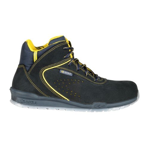 FOOTBED: EVANIT, made of EVA and nitrile special compound, with high bearing capacity and variable thickness (12mm - 8mm - 3,8mm). Thermoformed, punched and coated with highly breathable fabric. Antistatic thanks to a specific treatment on the surface and to seams made of conductive yarns