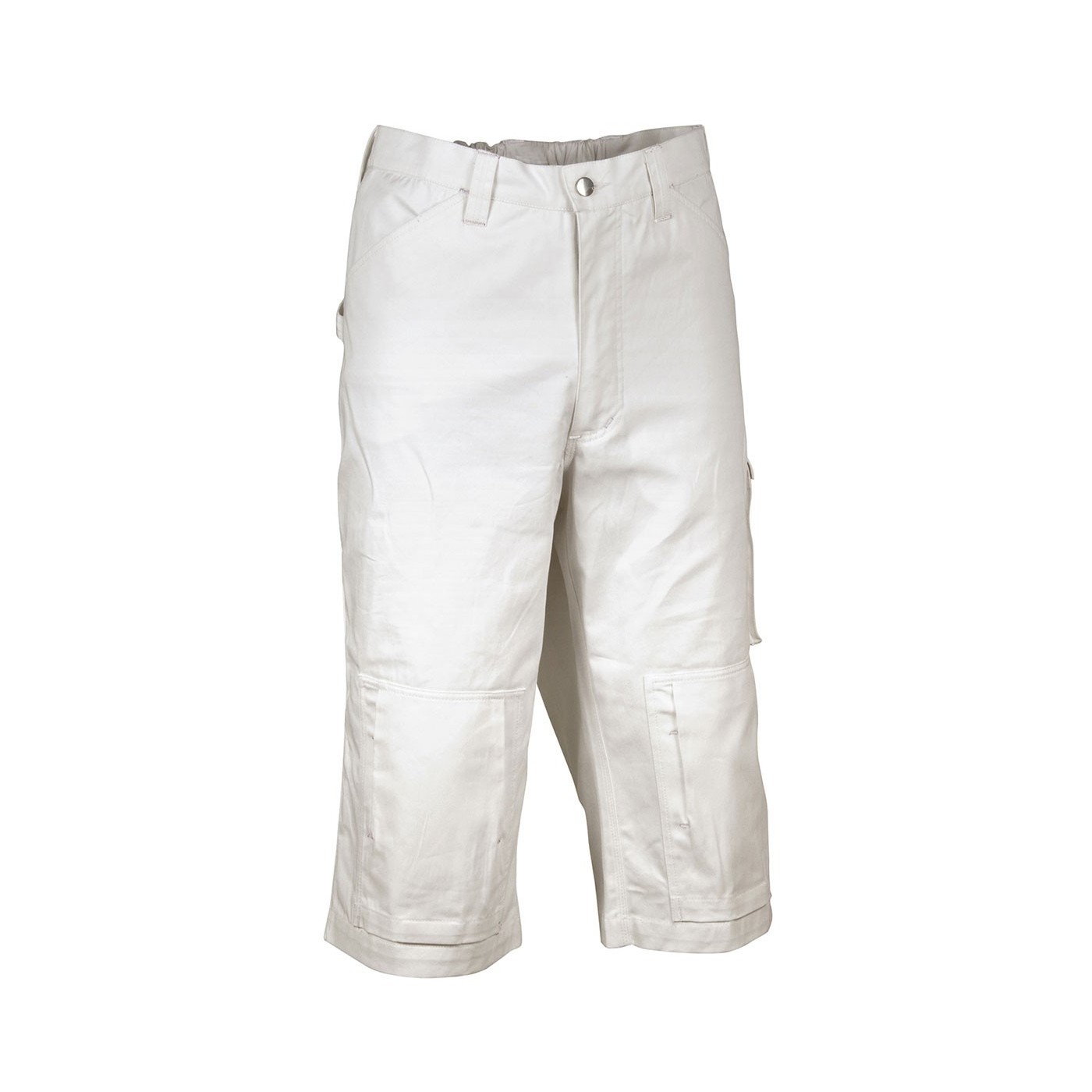 Tiro reforzado, amplios bolsillos delanteros, bolsillo trasero con velcro, bolsillo porta metro, pasador portamartillo, bolsillo en la pierna, cintura elástica, apertura para incorporar la protección de las rodillas.