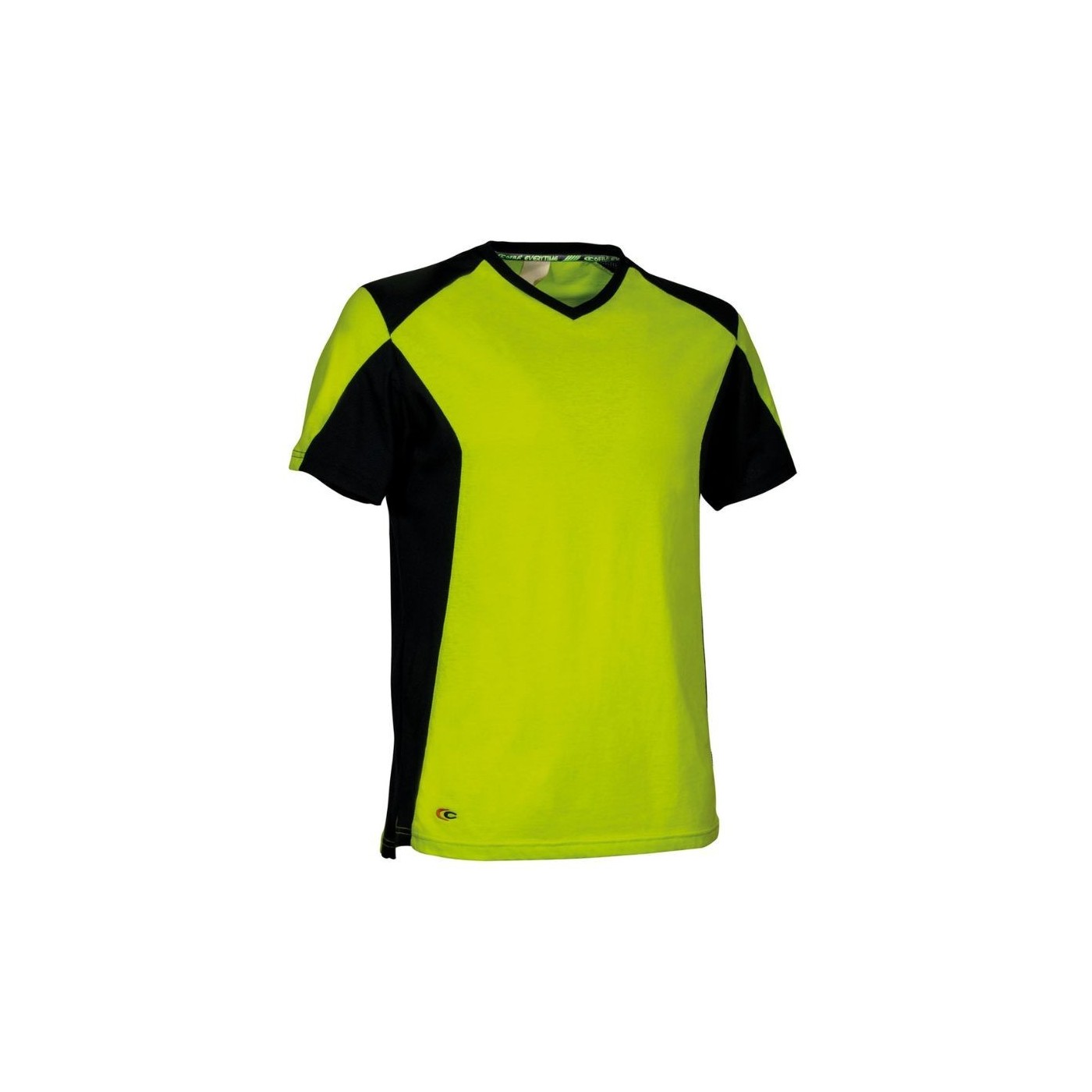 It is a two-tone 60% cotton 40% polyester composition t-shirt that stands out for its perforated cotton fabric inserts on the side of the shoulders and armpits to offer better breathability.