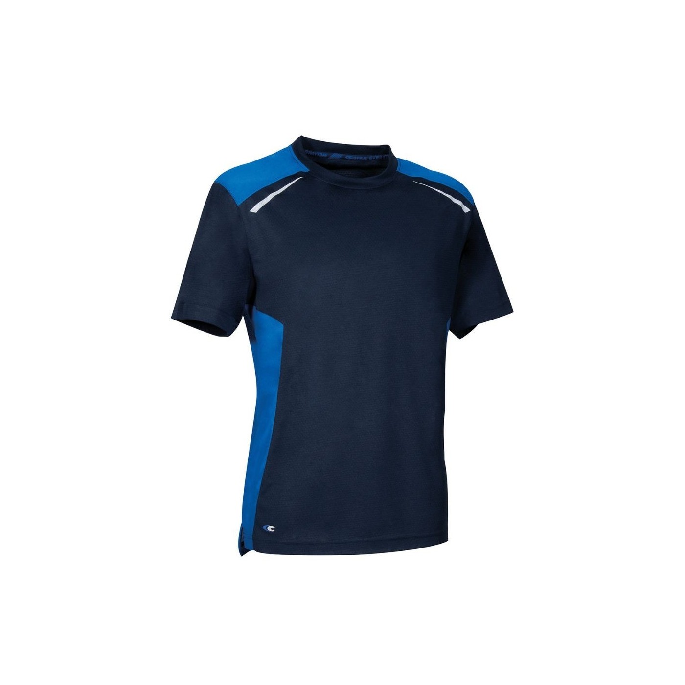 Technical t-shirt with side slits at the waist and perforated fabric inserts on the sides of the shoulders for better breathability.