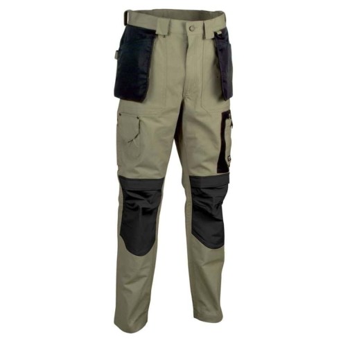DESCRIPTION: 2 back pockets, one of them with flap, pen pocket, hammer loop, knee and leg ergonomic design, left side pocket with flap, rule pocket, outer pockets for nails, front pocket, adjustable waist, YKK® zip