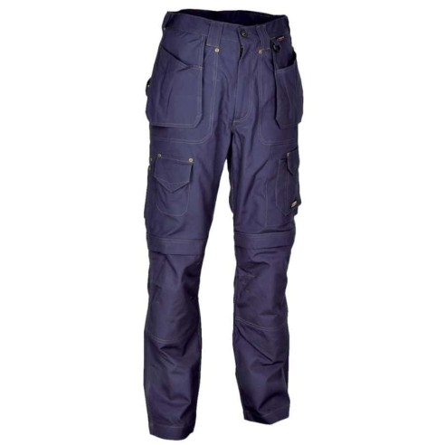 DESCRIPTION: 2 back pockets, one of them with flap, pen pocket, hammer loop, knee and leg ergonomic design, left side pocket with flap, rule pocket, outer pockets for nails, front pocket, adjustable waist, YKK® zip