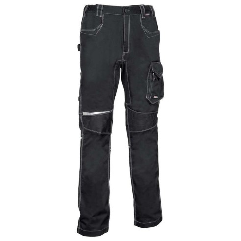 DESCRIPTION: large front pockets, side pocket with double opening (velcro and zip closure), meter pocket, ergonomic cut of the legs and knees, double rear pocket one of which with flap with velcro, internal elastic at the waist, crotch and back in stretch fabric for maximum freedom of movement, elastic insert over the knee for flexibility of movement, reflective inserts, hammer pin