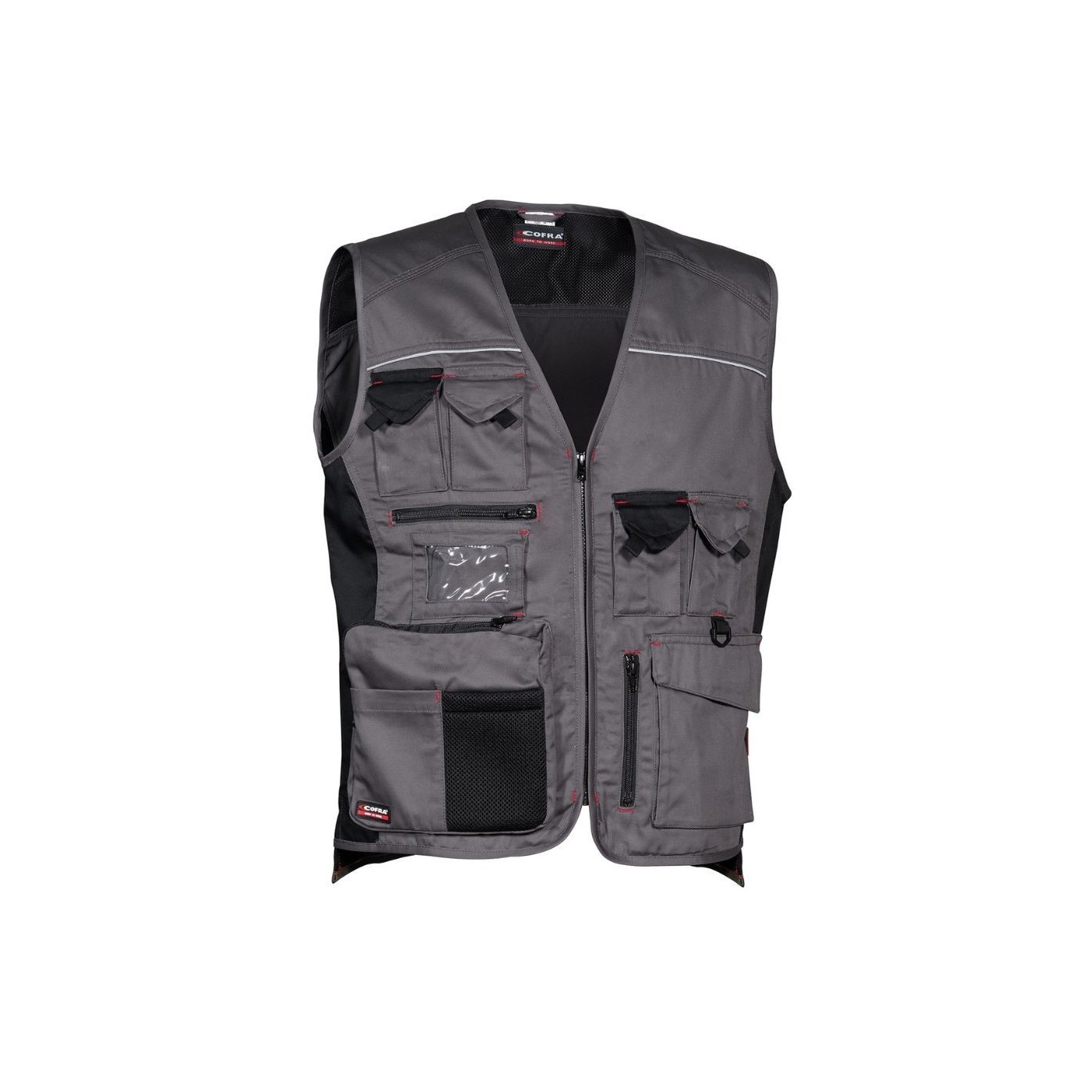 The Cofra EXPERT work vest offers maximum functionality with multiple pockets, YKK® zipper, and ID card holder. Ideal for demanding jobs, it combines comfort, durability, and organization. Perfect for professionals who need efficiency.