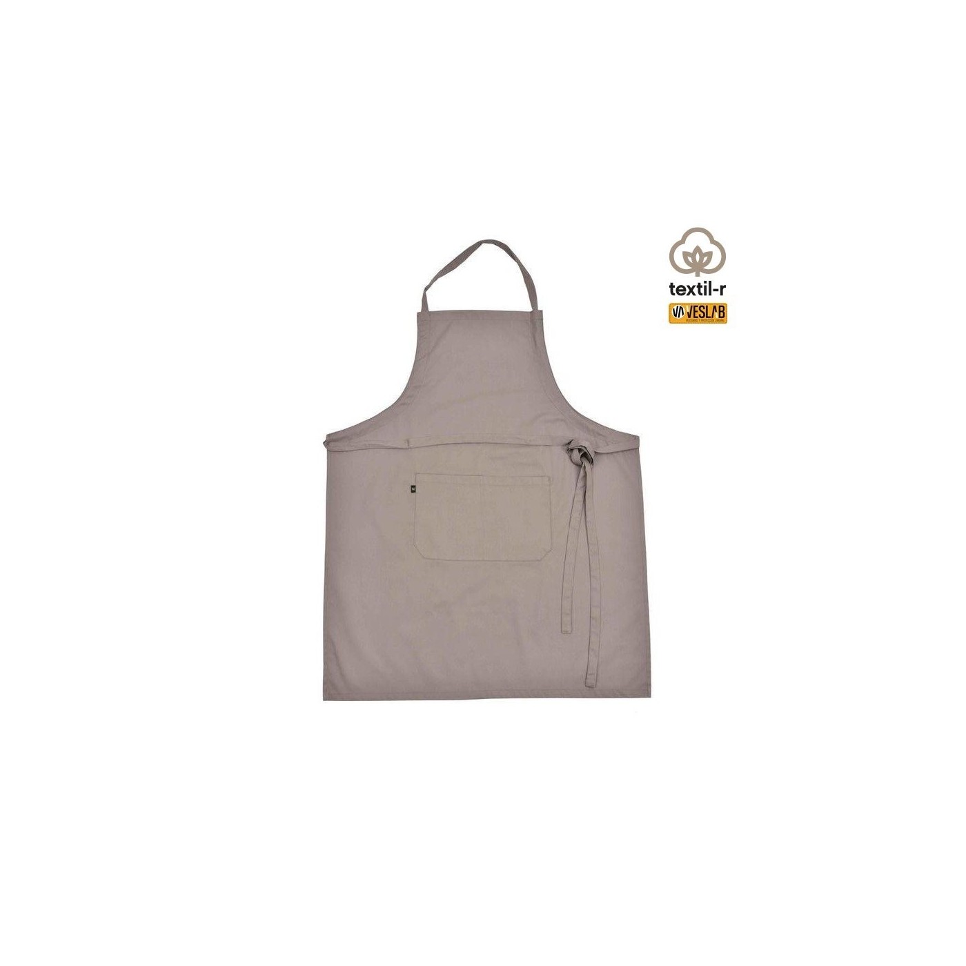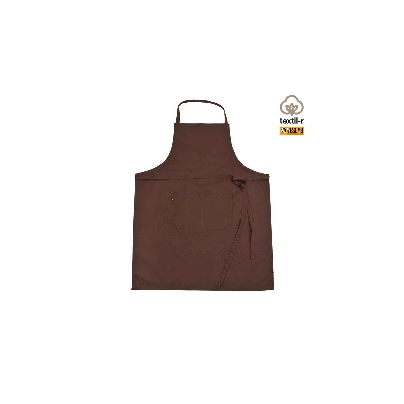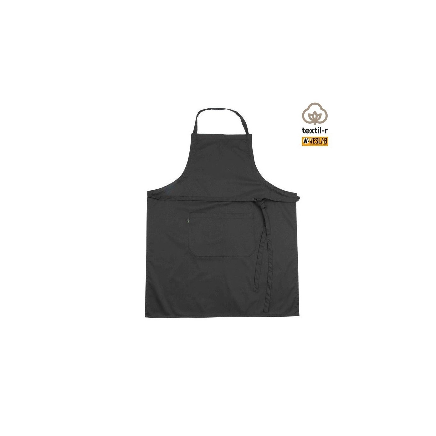 Apron for hospitality with bib, pocket in the center of two compartments. It is an essential accessory for the kitchen or living room made of very resistant and durable fabric.