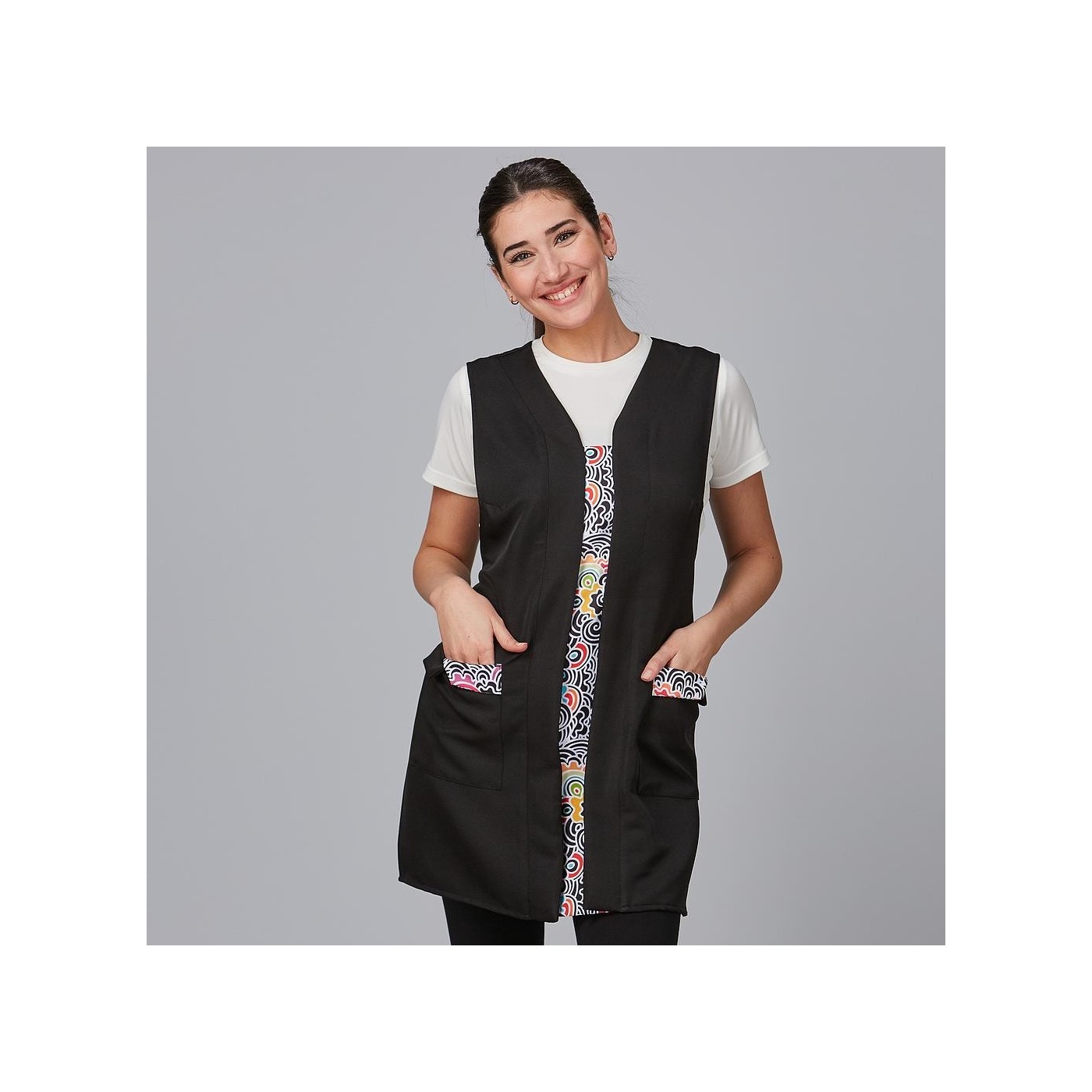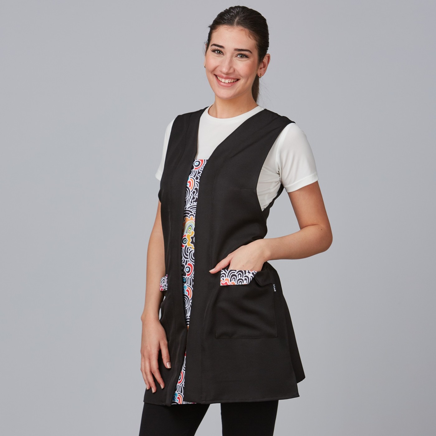 This black stole features an innovative design that adds a touch of distinction and uniqueness. With two handy side pockets, this stole offers extra space to store your essential tools and accessories during your workday.