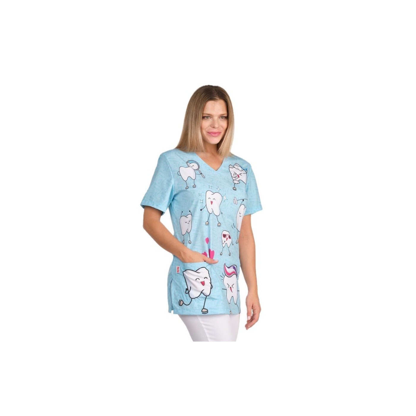 The unisex microfiber medical scrub top is the perfect garment for healthcare professionals seeking comfort, style, and functionality in their daily work. With a modern and fun design printed with teeth, this scrub top is ideal for dentists and any healthcare worker looking to stand out without sacrificing comfort.