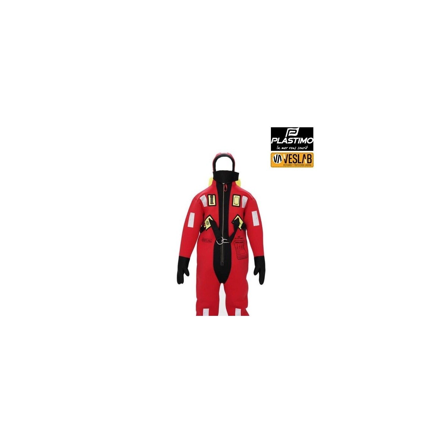 Survival suit for use in high risk or confirmed danger situations for evacuation. It offers a buoyancy of 150 N and thermal insulation. It also works as a life jacket.