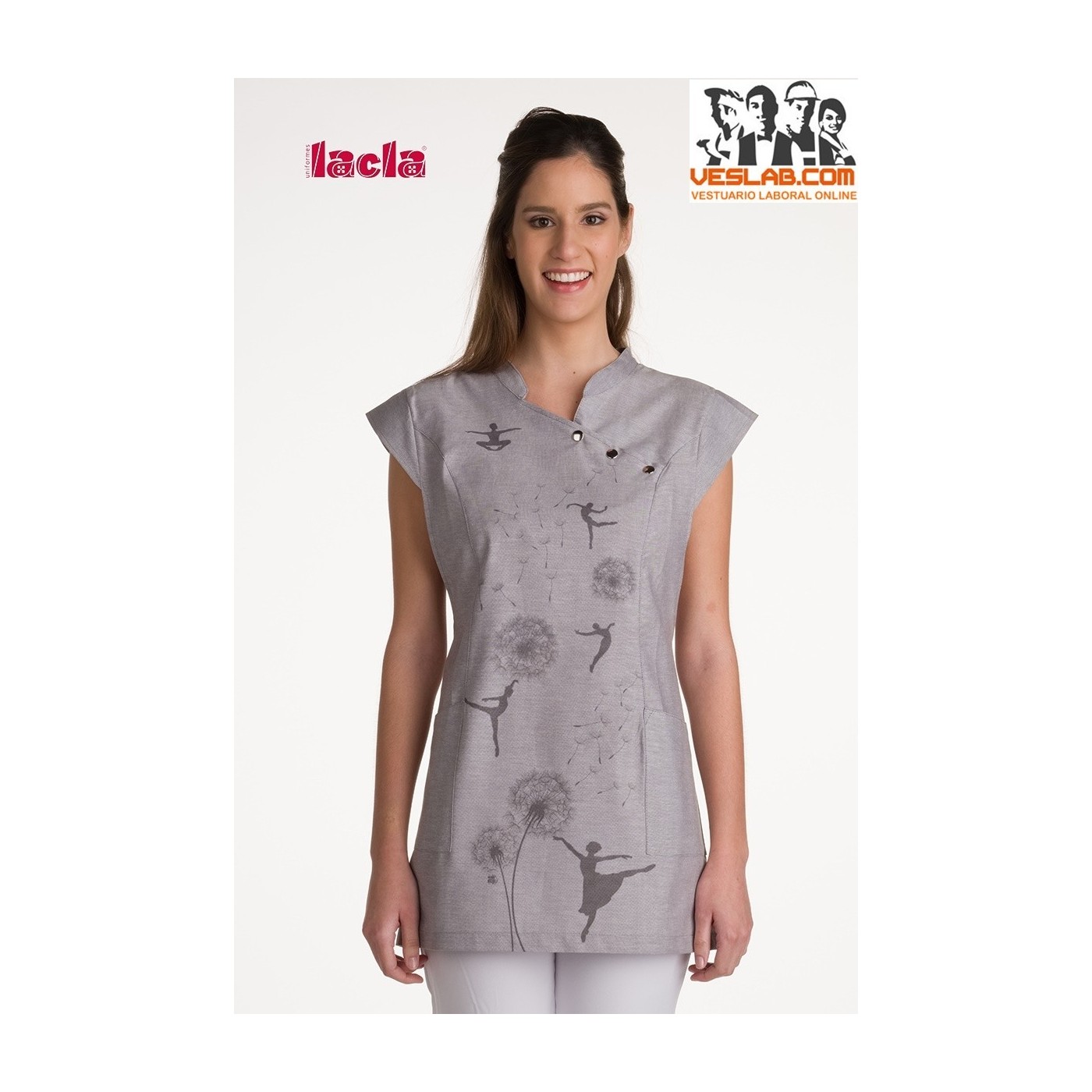 Mao stole collar. with metal clasps under pressure. mini sleeve front with selvedges and pockets. Fit waist with ribbons that cross at the back and knot at the waist.