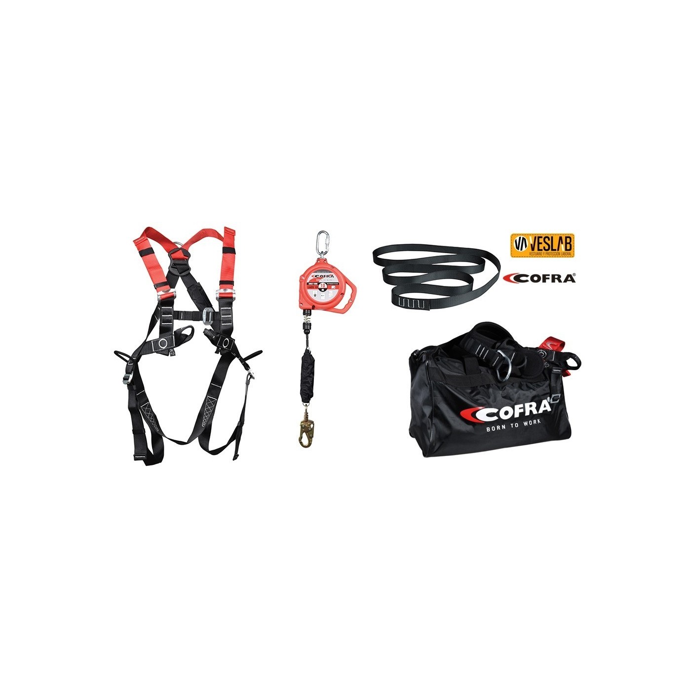 DESCRIPTION: Kit designed to be used in the industrial sector. The kit consists of a harness, a 10 m retractable cable equipped with connectors and an anchor strap. The use of the retractable improves the mobility of the operator.
