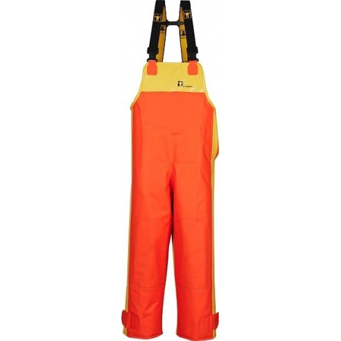 High bib and braces with plenty of room front and back. Elasticated self-adjustment at waist. Made of Nylpeche fabric on the front and Cap-coz on the back. Double reinforcement on front, and triple on chest and knees. Inside chest pocket. Self-grip adjustment tab at bottom of legs. Inside knee-pads compartments.