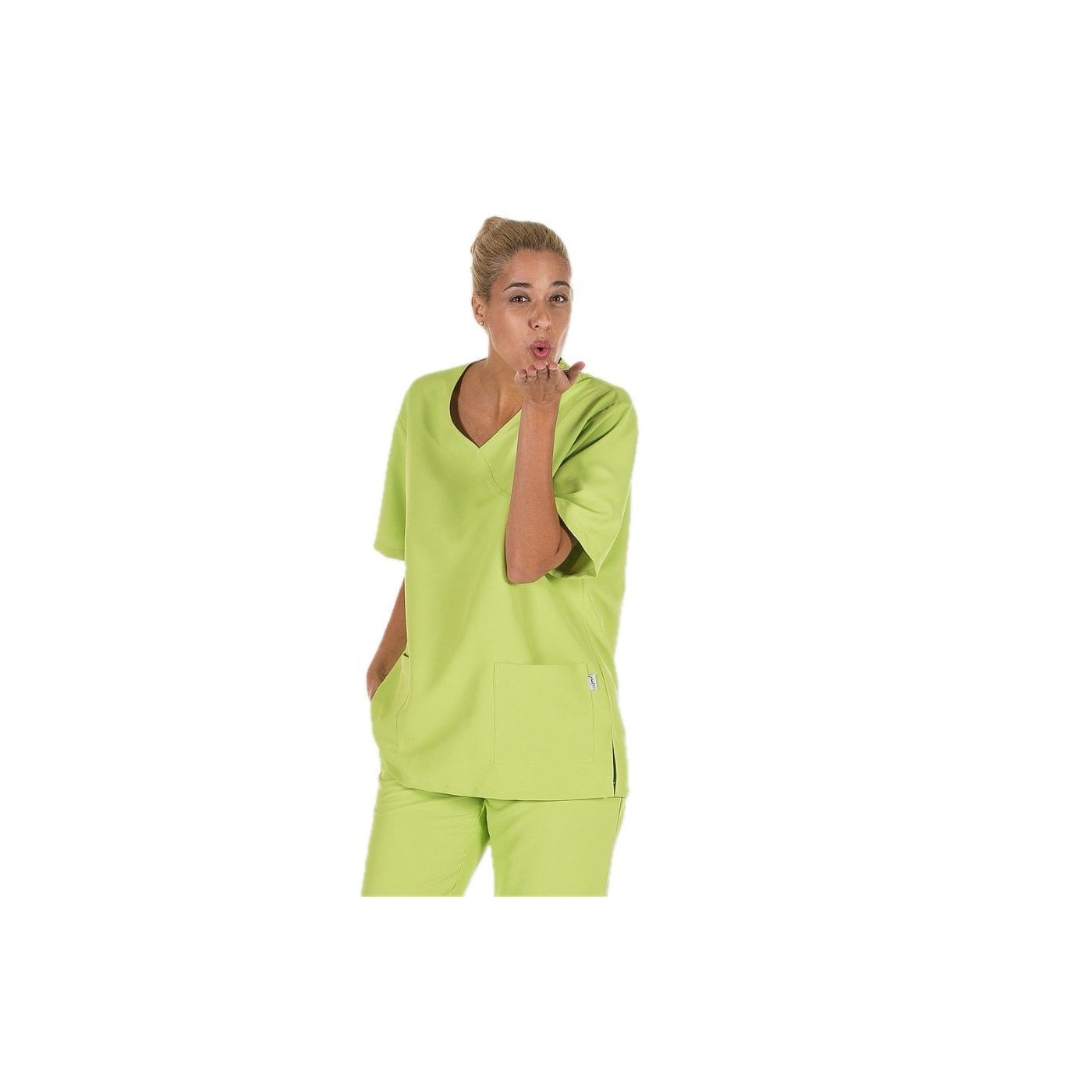 Discover the Nerea Unisex Microfiber Blouse: comfort and style in a healthcare garment made of 100% polyester microfiber, antibacterial, breathable, and bleach splash resistant. Washable at 90º, no ironing needed, and hair repellent. Ideal for healthcare professionals and more.