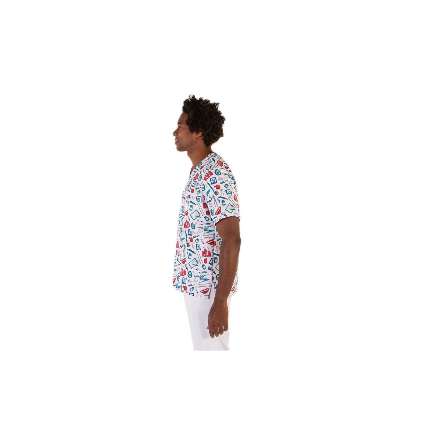 The Garys' printed microfiber dentist tunic is more than a work garment, it is an experience of comfort and efficiency. Designed with your daily needs in mind, this short-sleeved, unisex V-neck tunic not only makes you look professional but also gives you the freedom of movement you need.