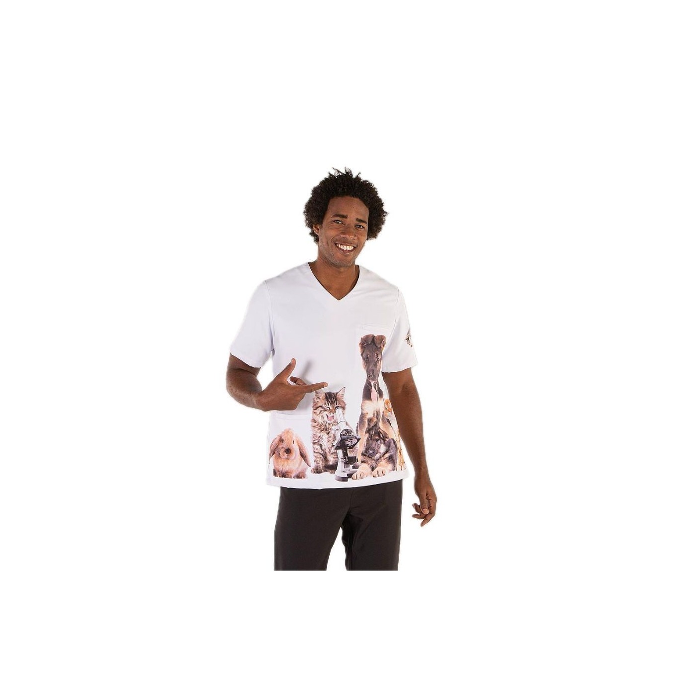 The Garys Printed Microfiber Veterinary Tunic combines functionality and style seamlessly. Designed to provide you with comfort throughout the day, this short-sleeved, unisex tunic with a V-neck adapts to your needs elegantly.