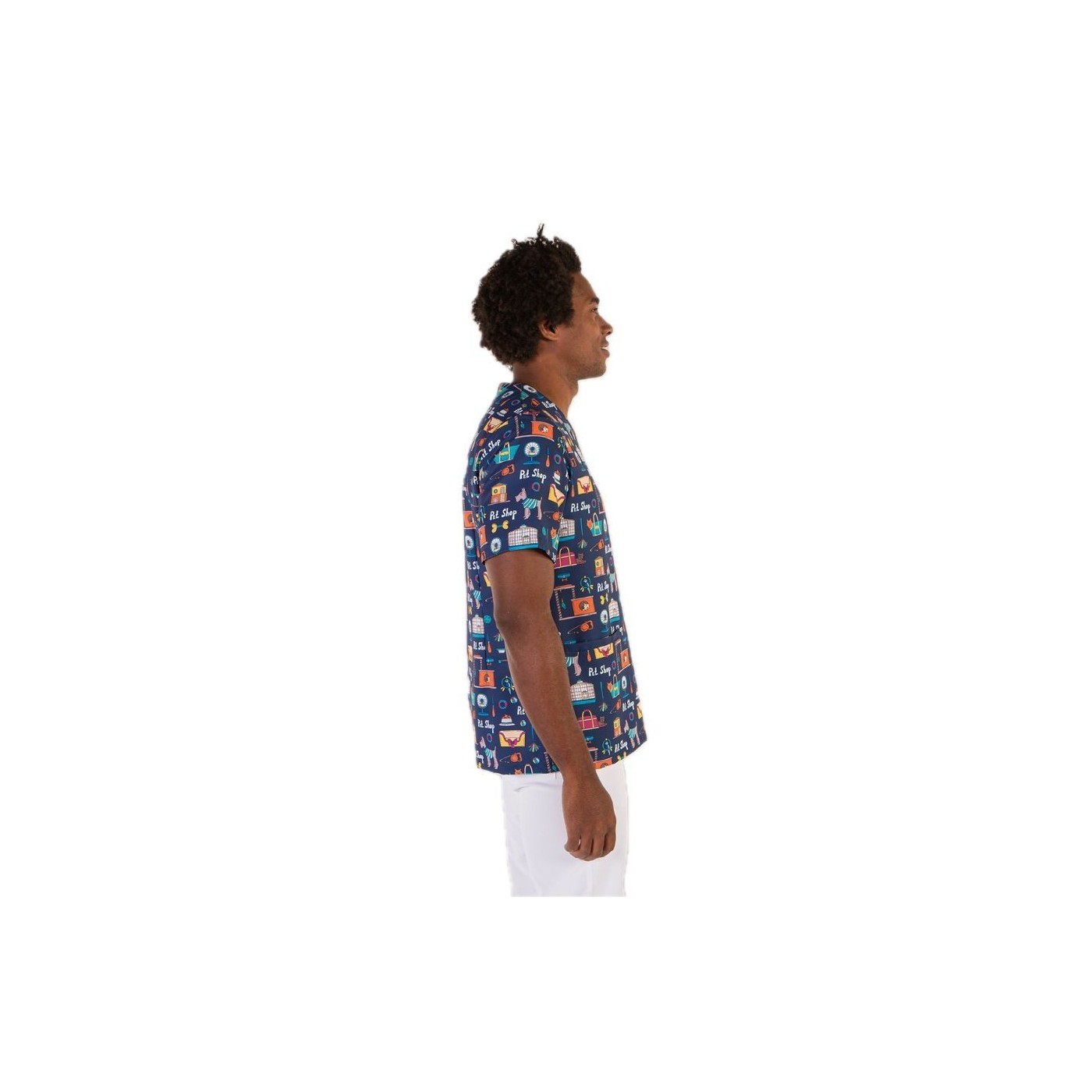 Microfiber veterinary tunic, unisex and short-sleeved, with strategic pockets, semi-fitted design, and side slits. Antibacterial, breathable, splash-resistant, and easy to wash.