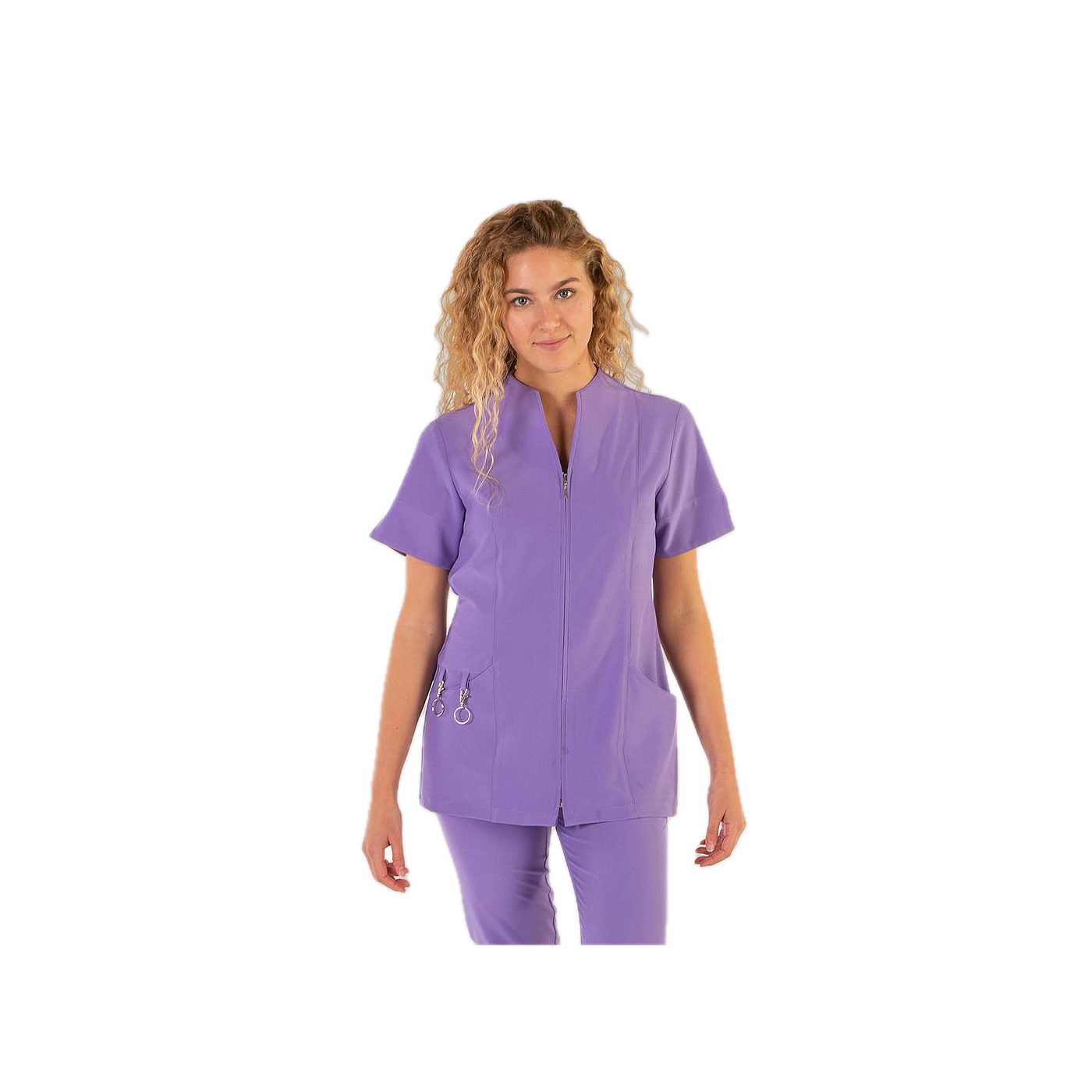 Experience elegance and comfort with the Zipper Microfiber Blouse YANIRA by Garys! Crafted in MICROFIBER 360 with SILVADUR antibacterial treatment for freshness and protection. Its modern design includes front zipper closure and perfect fit with darts and seams. Ideal for healthcare professionals who value style and functionality.