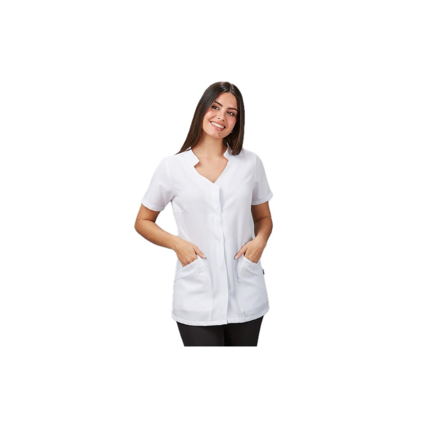 Discover the Women's Short-Sleeve Blouse Adelfa, a versatile garment designed to enhance your professionalism without sacrificing comfort. Perfect for demanding work environments such as hair salons and beauty centers, this blouse combines functionality and style in a modern and durable piece.