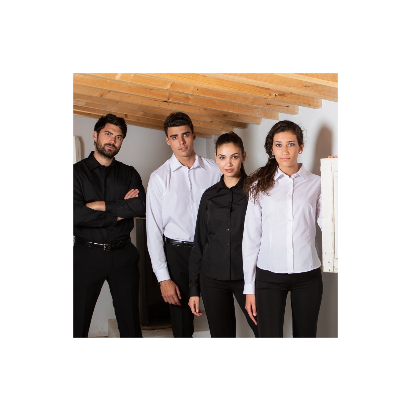 Ideal for uniforms in hospitality and restaurant settings, as well as for reception, transportation, offices, and general retail, the WOMEN'S L/S POPLIN BLOUSE "REDLINE" from Gary's not only enhances your professional image but also elevates your team's standard with its modern and neat design.