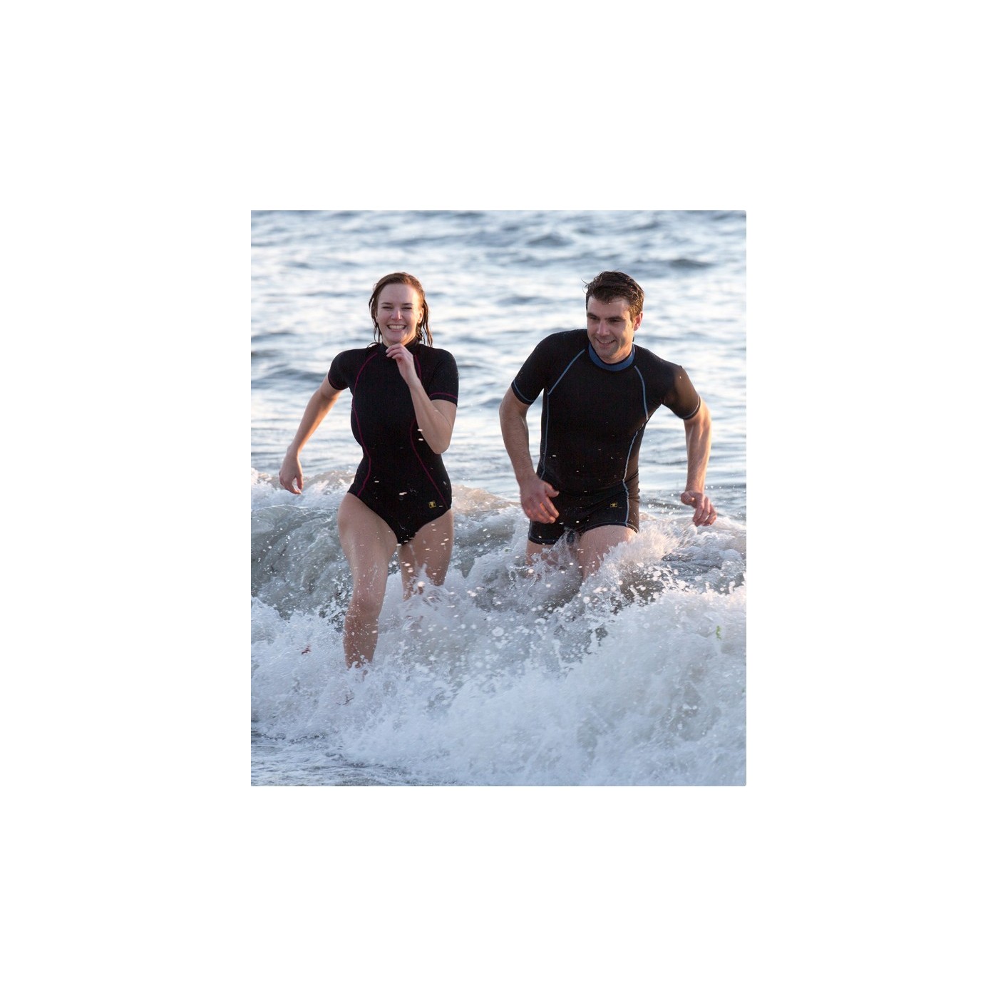 An incredible efficiency swimsuit for a thickness of only 0.5 mm. It keeps the body warm thanks to its titanium sheet fabric.