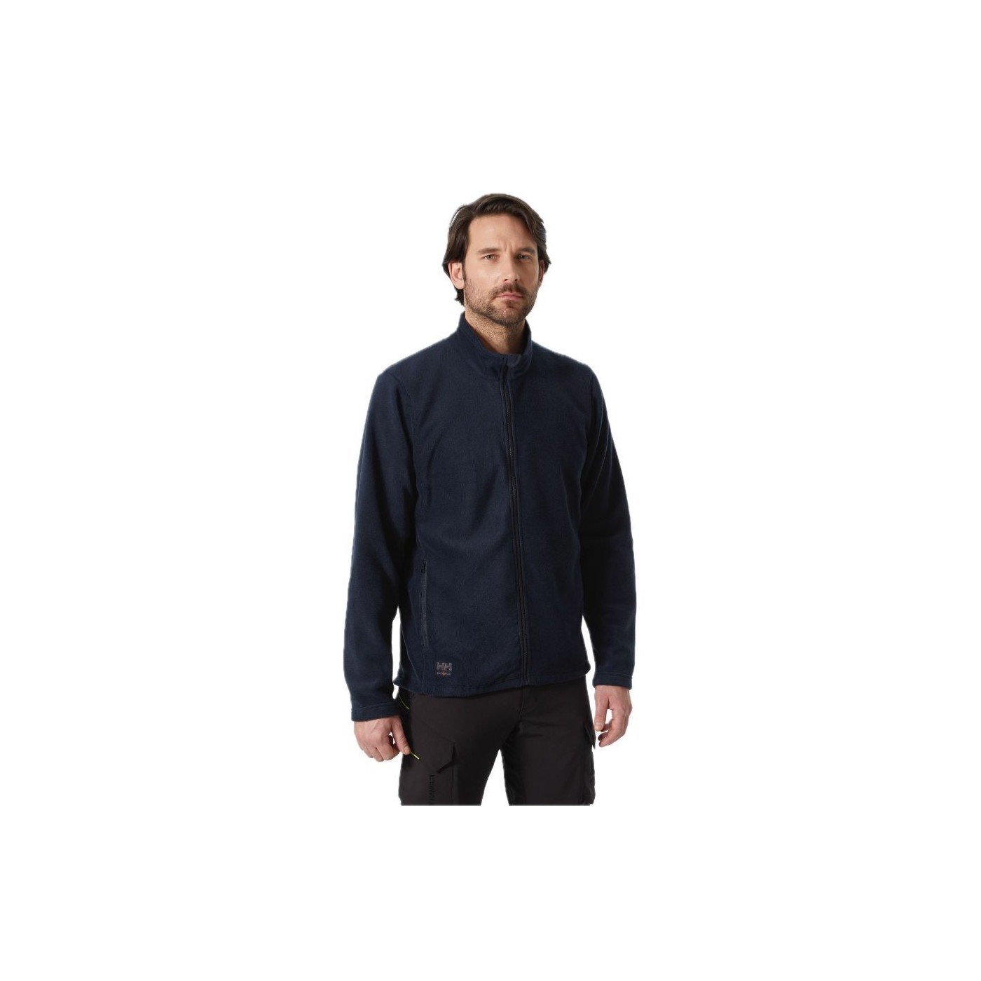 The Manchester 2.0 fleece jacket from Helly Hansen Workwear is made from 100% recycled polyester, certified to EN 14058:2017 for cold protection, featuring YKK® zippers and a brushed lining in the collar for added comfort. Perfect for working in cold environments.
