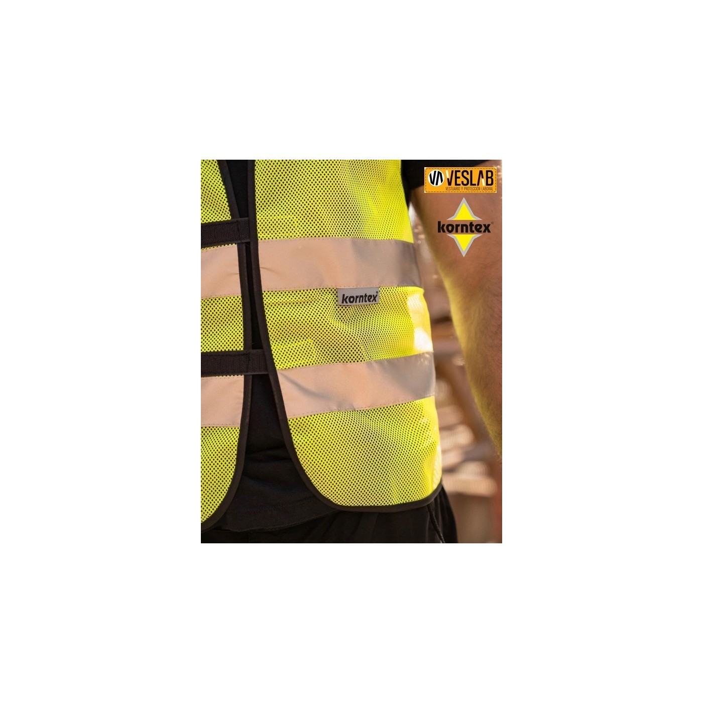 This Korntex high visibility safety vest is ideal for jobs where it is essential to guarantee good visibility for the worker and that he always remains ventilated thanks to the excellent breathability of the mesh fabric of this vest.