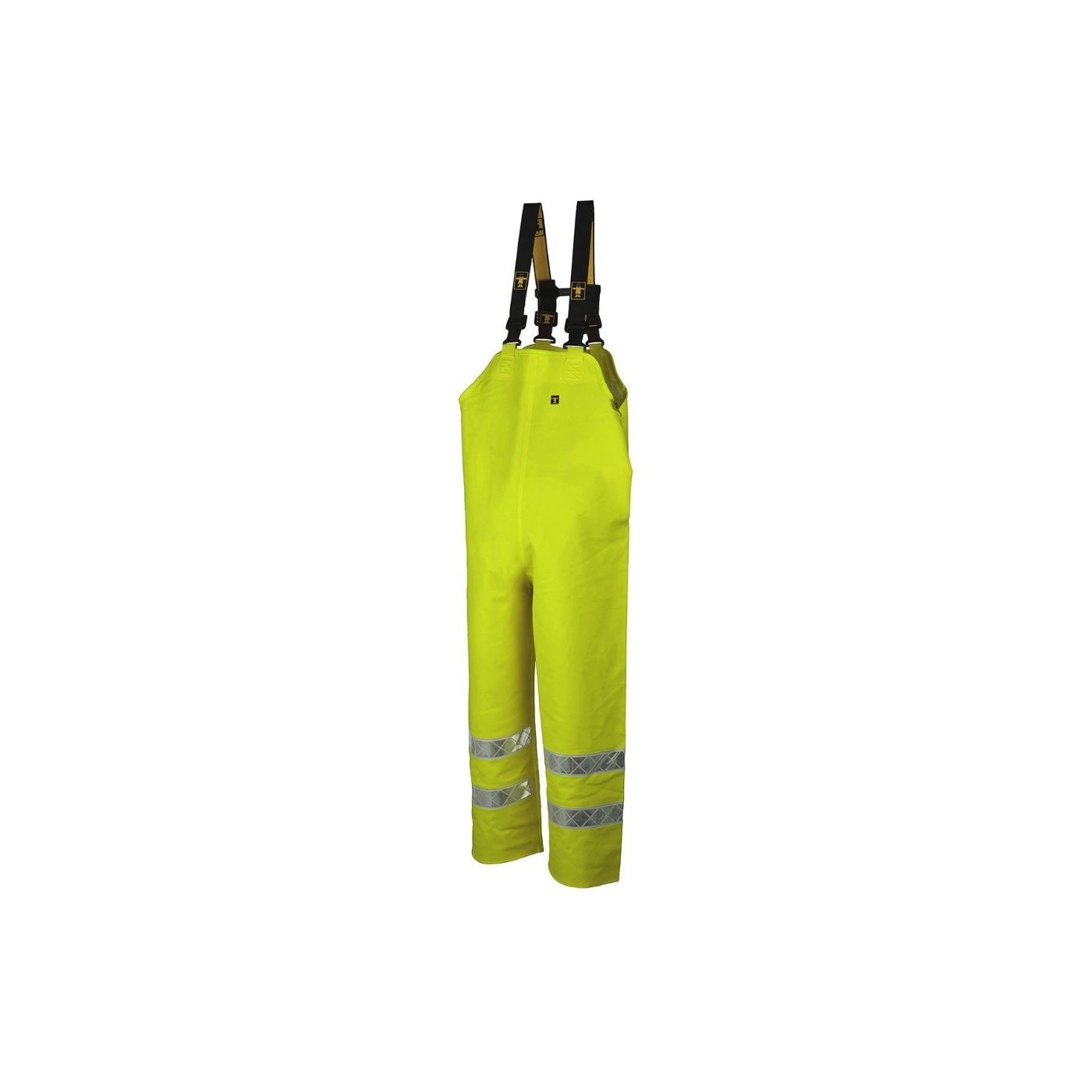 Features elastic adjustable and removable braces with plastic clips, REFLEXITE® GP340 reflective bands, and a high back design that keeps the lower back dry.