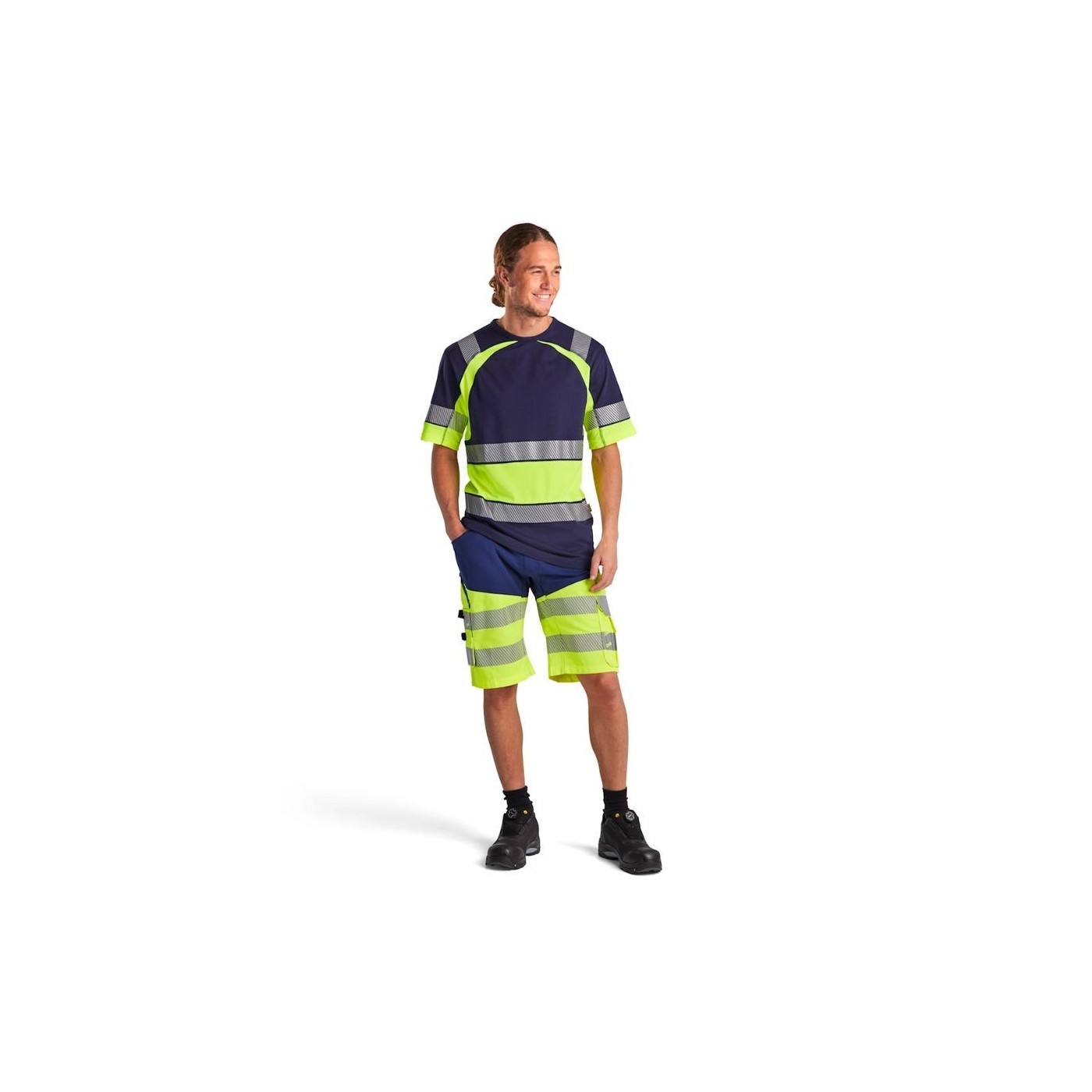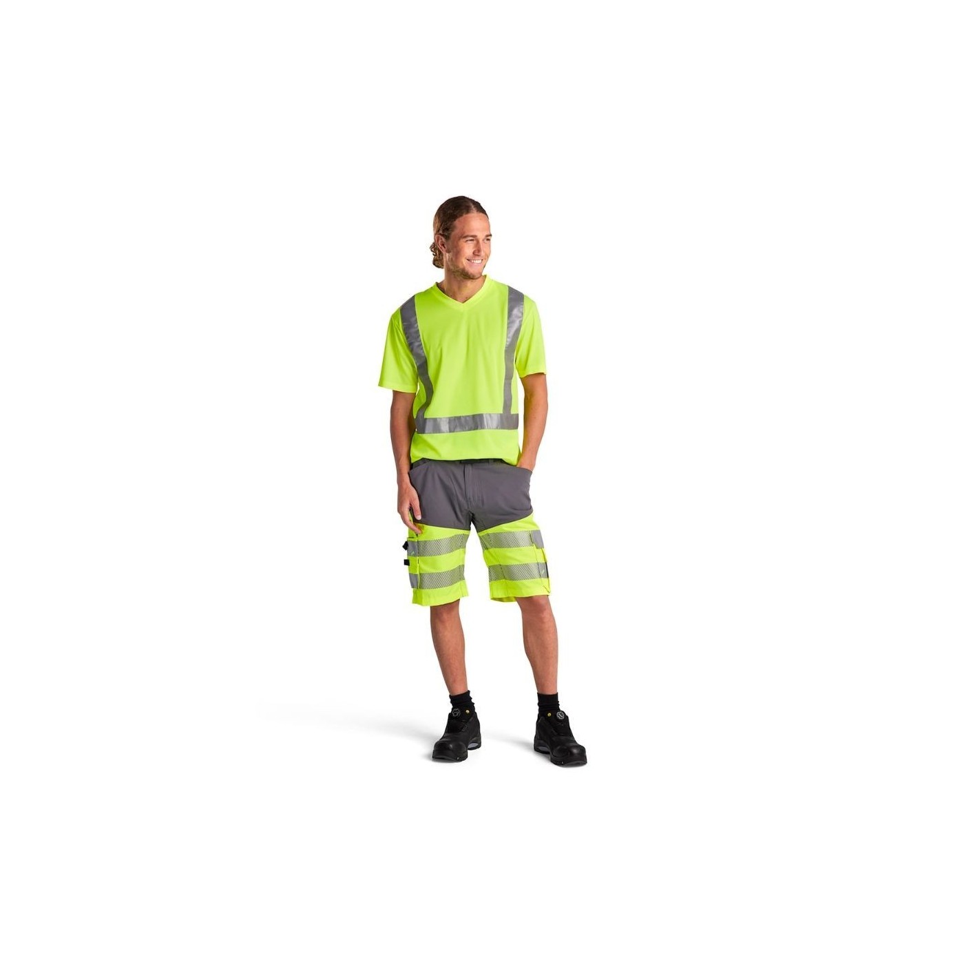 Blakläder Elastic High Visibility Shorts certified Class 1, with elastic panels for freedom of movement. Practical pockets and water-resistant fabric. Ideal for workers seeking safety and comfort.