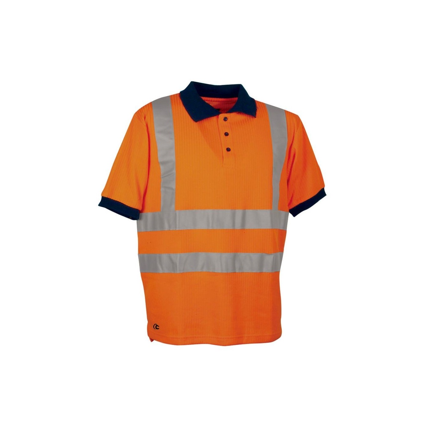 Cofra Spotlight high visibility polo shirt. With side slits at the waist. The collar and the edge of the sleeves are made of thick cotton to absorb sweat under the neck.