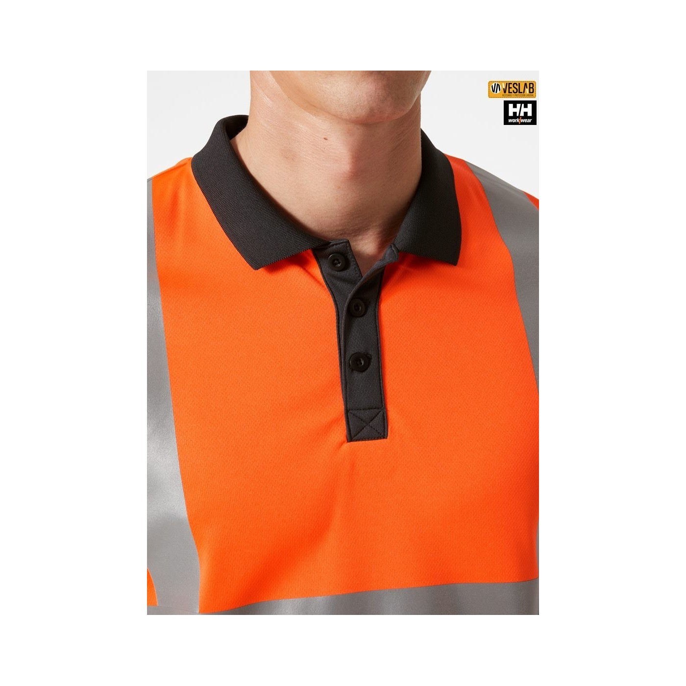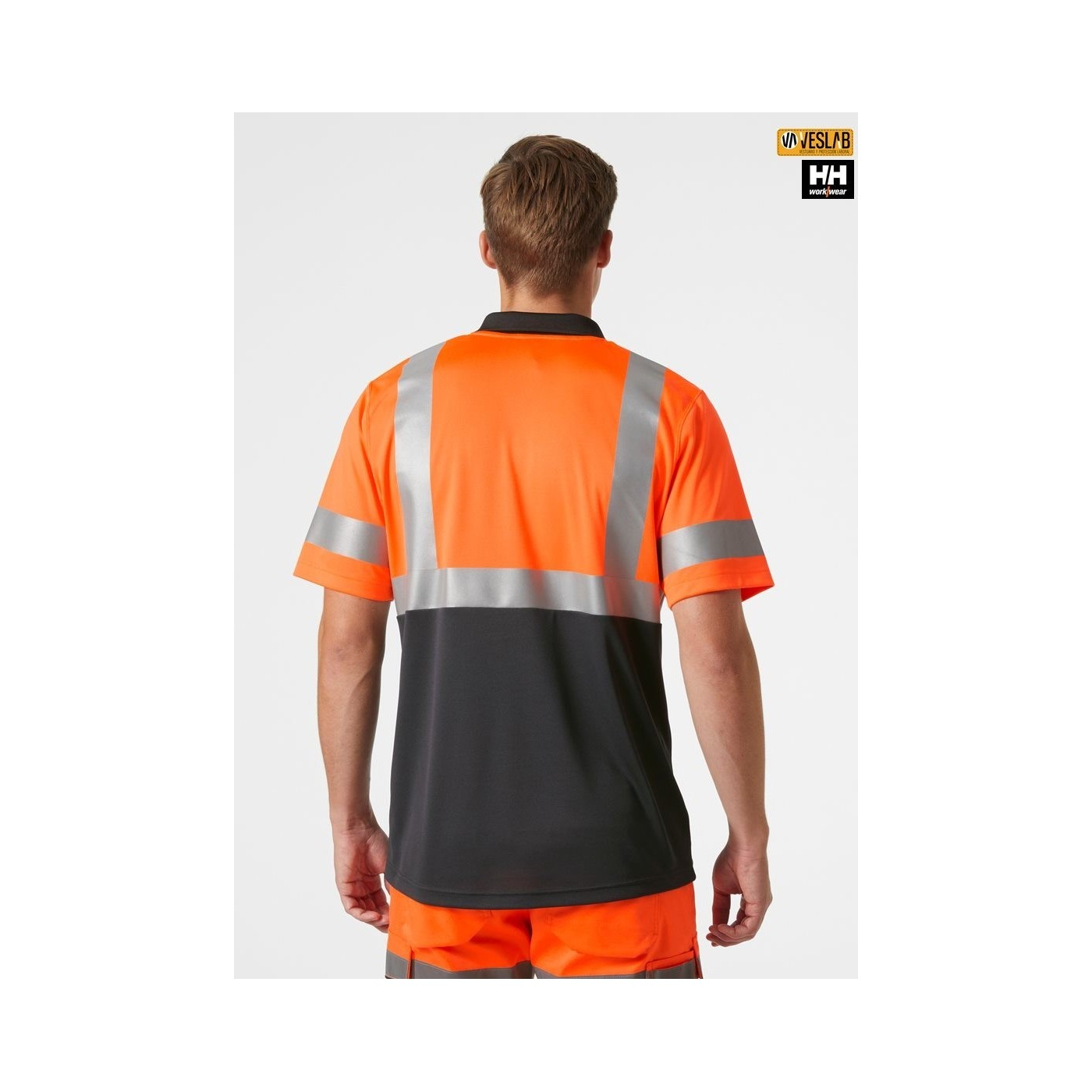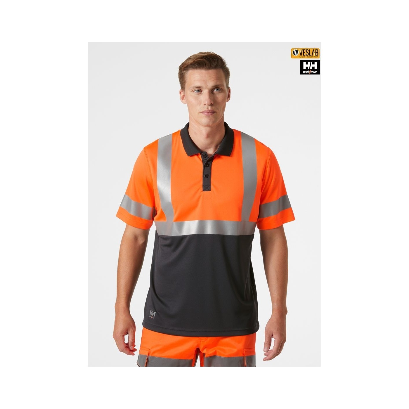 Helly Hansen Workwear high visibility polo shirt in fluorescent yellow, orange and red.