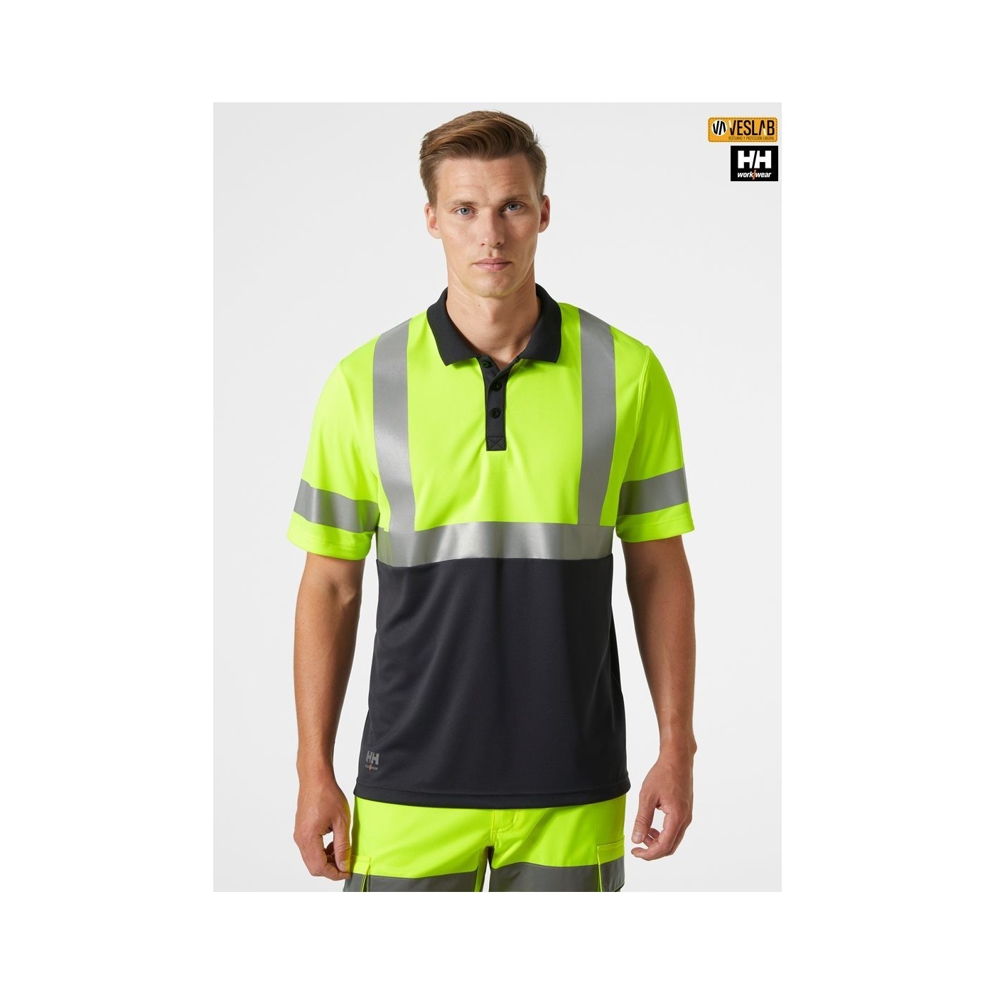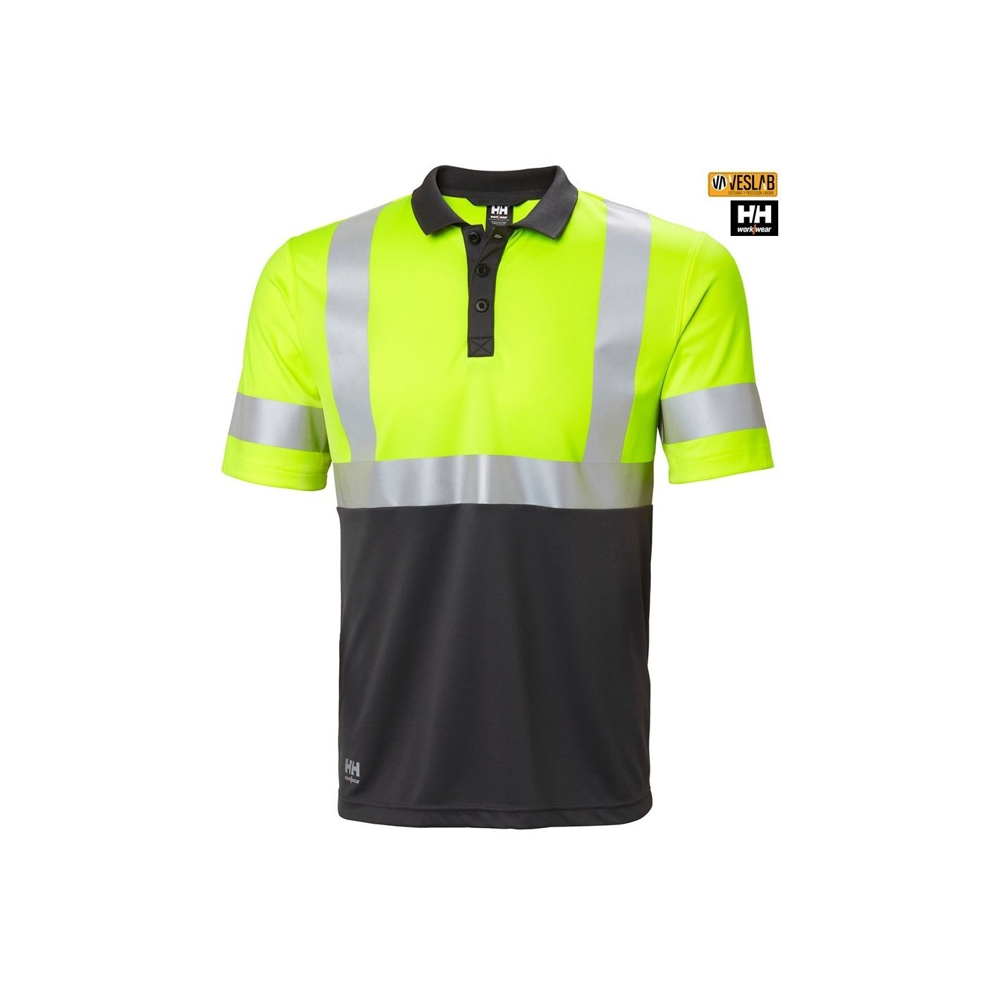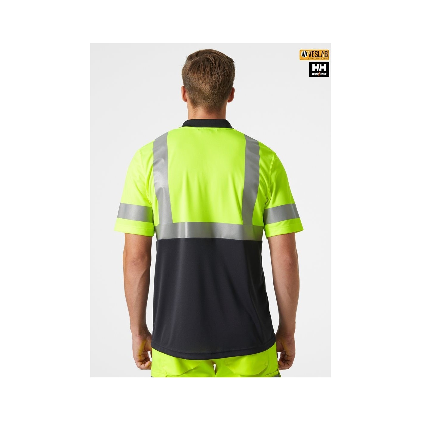 Helly Hansen Workwear high visibility polo shirt in fluorescent yellow, orange and red.