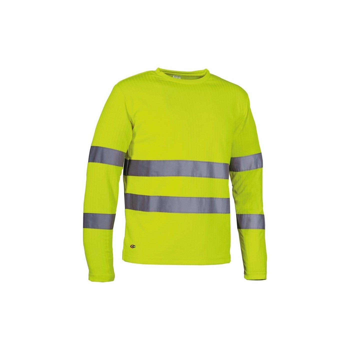 The NEW FLASH high-visibility t-shirt by Cofra combines safety and comfort, with reflective details, durable fabric of 75% polyester and 25% cotton, and side openings for increased mobility. Ideal for industrial and logistics environments.