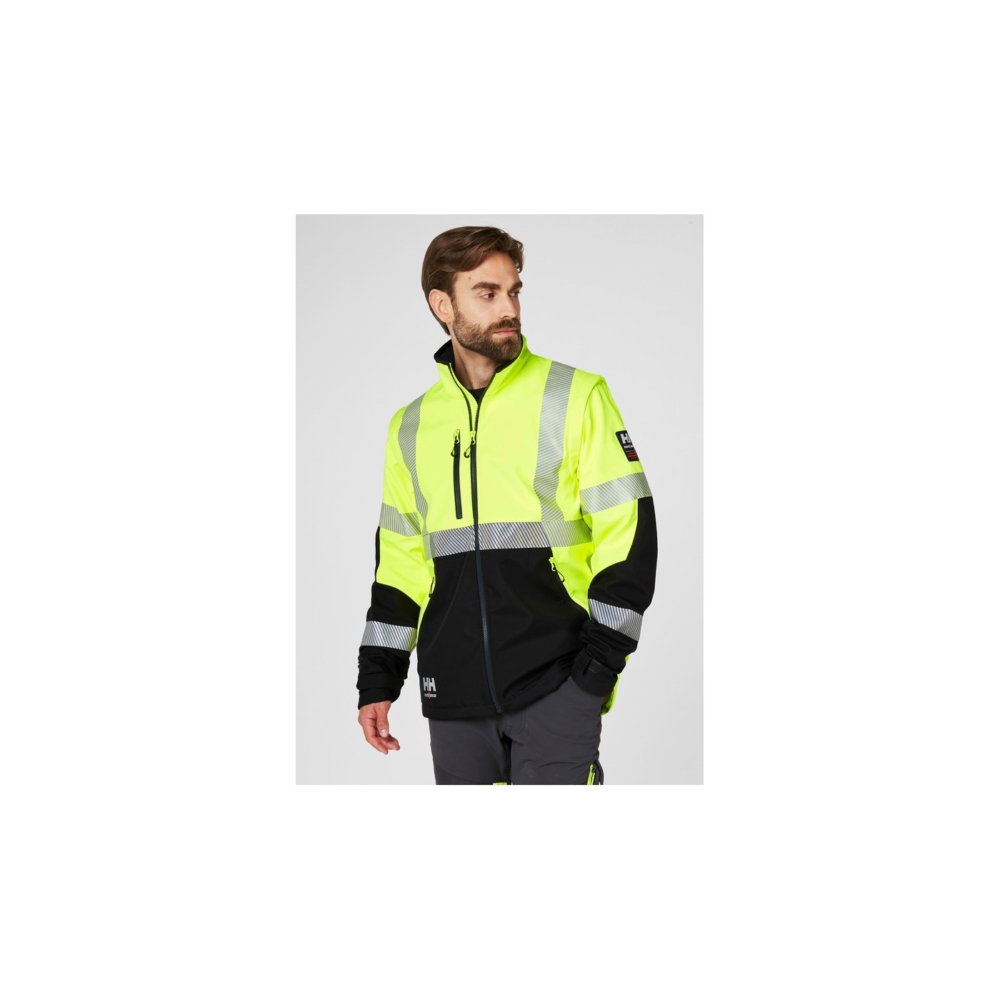Features: EN ISO 20471 Cl 3 Hivis, Cl 2 without sleeves, S = Cl 2, Cl 2 without sleeves |100% Polyester 320g/m2|YKK zipper|Softshell, fleece inside|Brushed Tricot inside collar|YKK Vislon centre front zipper|Chest pocket with YKK zipper|Reflective bands around body, sleeves and on shoulders|Hand pockets with YKK zipper closure|Reflective elements|Detachable sleeves|Articulated sleeves|Velcro adjustment at cuffs| | ID-Card loop |Draw cord adjustment at hem|Tail drop