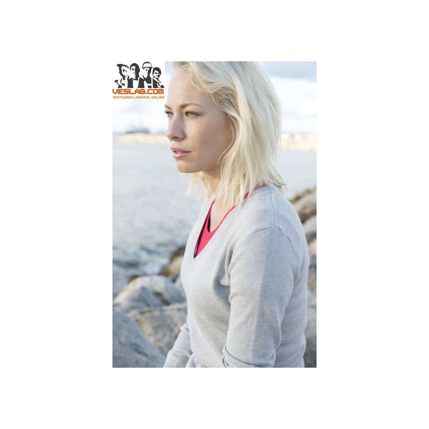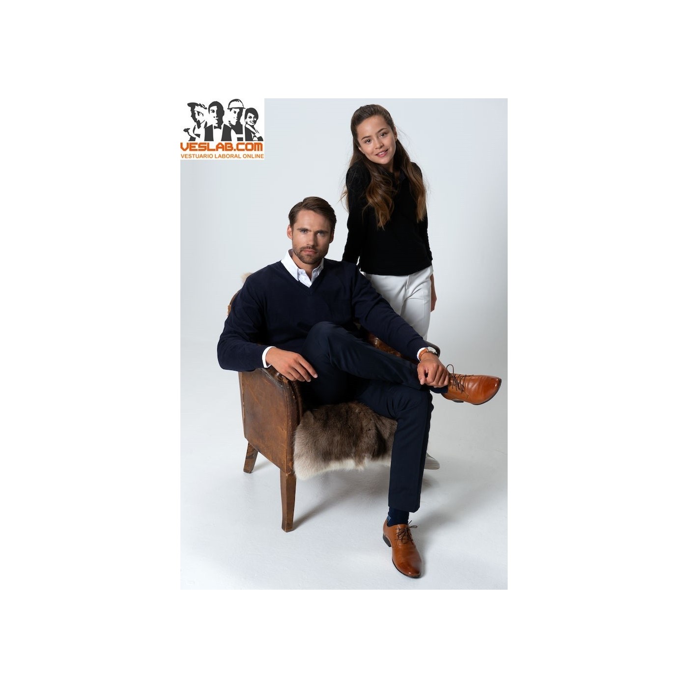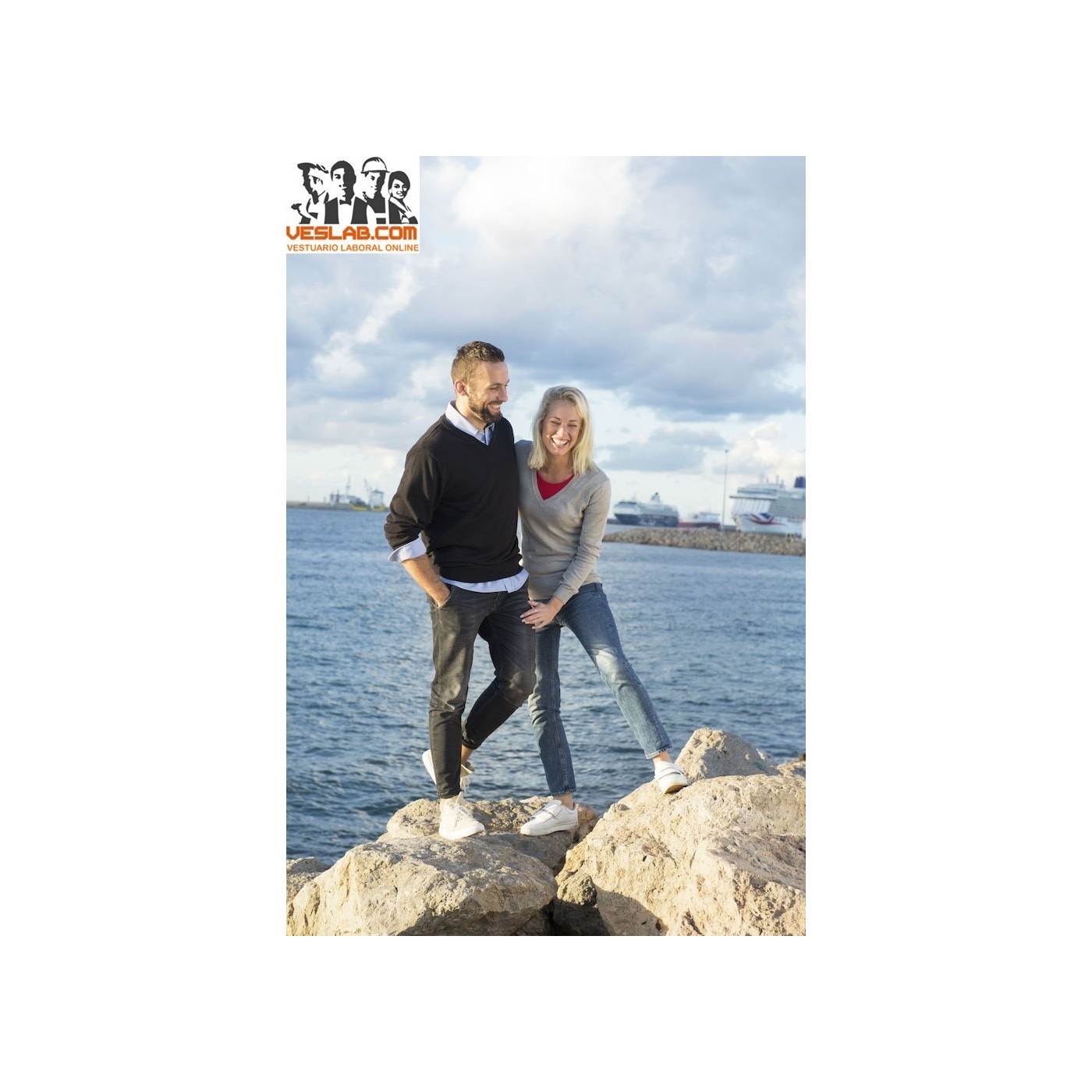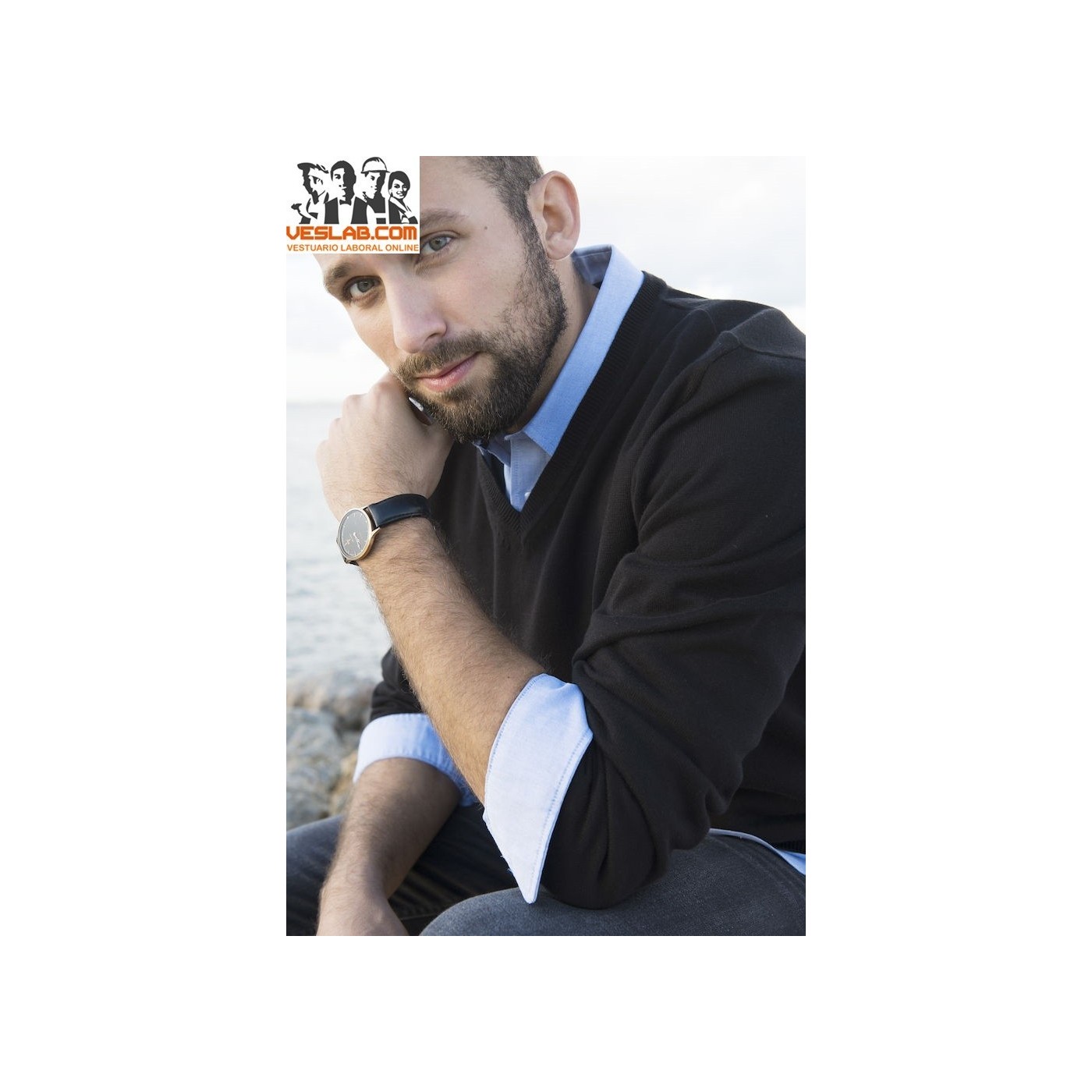 Men's v-neck jersey with a finish for a softer feel. Elastane ribbed, sleeves and hem.
